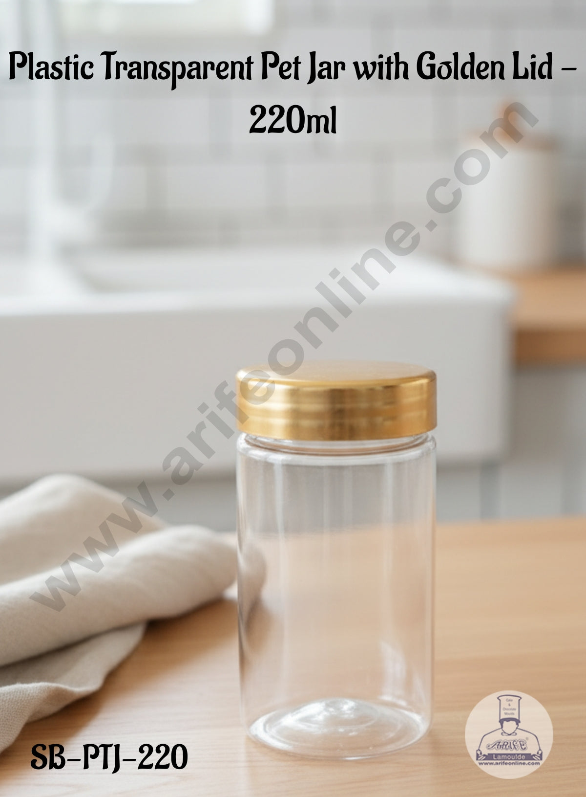 CAKE DECOR™ Clear Plastic Pet Jar with Golden Lid – 1 Piece – 220 ml – SB-PTJ-220