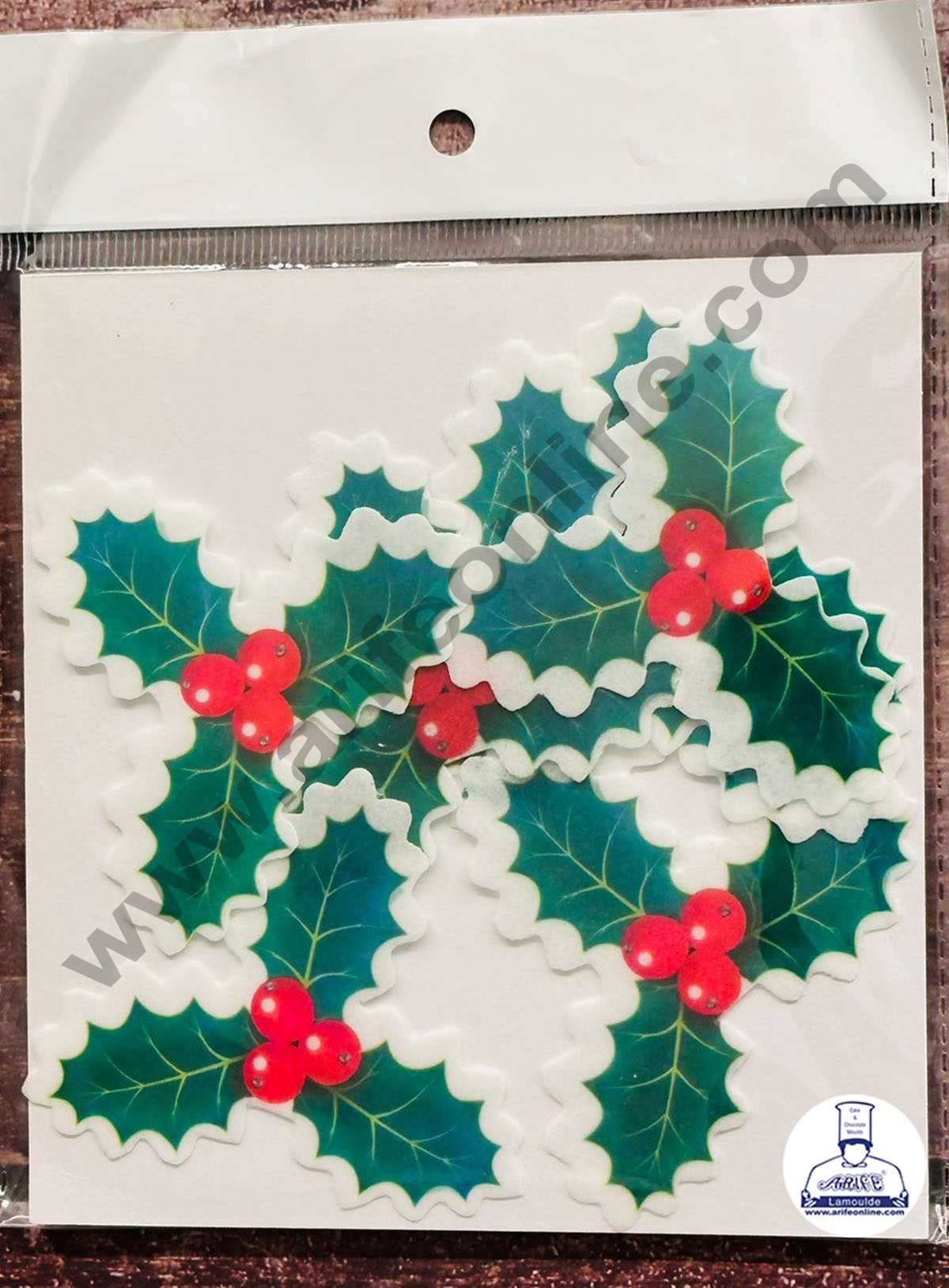 CAKE DECORβ’ Edible Pre Cut Wafer Paper – Holly Leaves Cake and Cupcake Topper – ( Set of 8 pcs) SBPC-Christmas-003