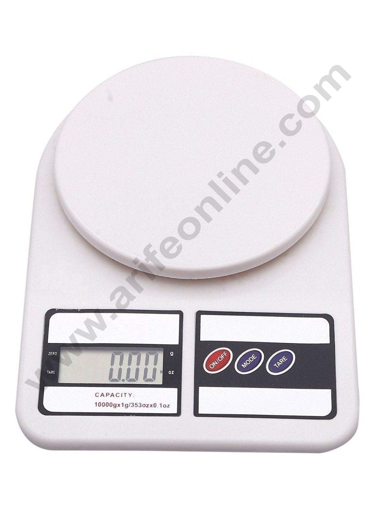 Cake Decor Electronic Kitchen Digital Weighing Scale, Multipurpose (White, 10 Kg Round)