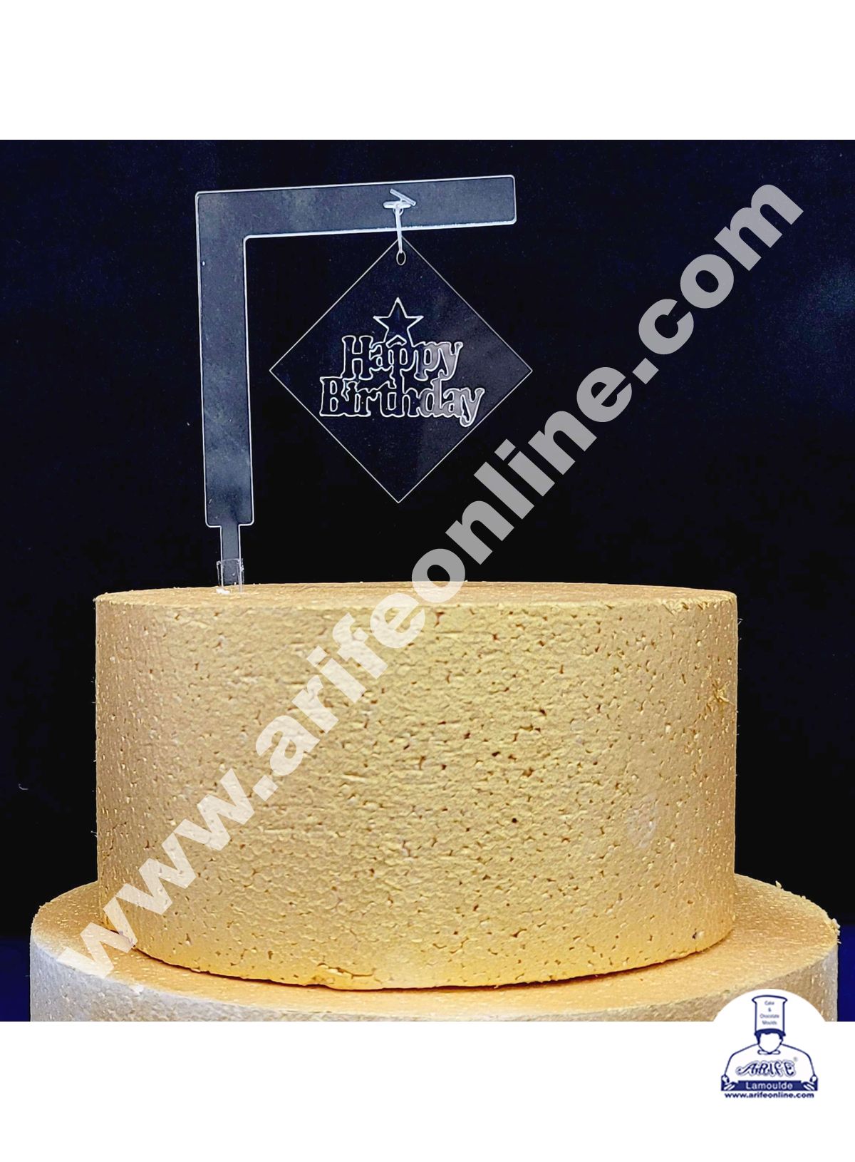 Cake Decor Exclusive Acrylic Hanging Cake Topper – Square Happy Birthday With Star Silver