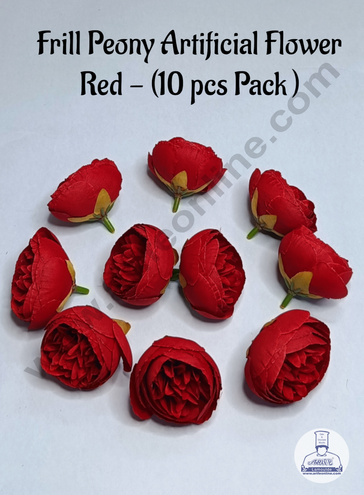 Cake Decorβ’ Β Frill Peony Artificial Flower For Cake Decoration β Red ( 10 pc pack ) Ideal for your fall decoration and so more. Color : Red. Pack Contain : 10 Piece . Usages : Home Decor, Boho Decor, Wedding Arch, Neutral House Decor, Dried Plants Decor, Dried Leaves Decor, Flower Decor, Floral Decor,Small Plants…
