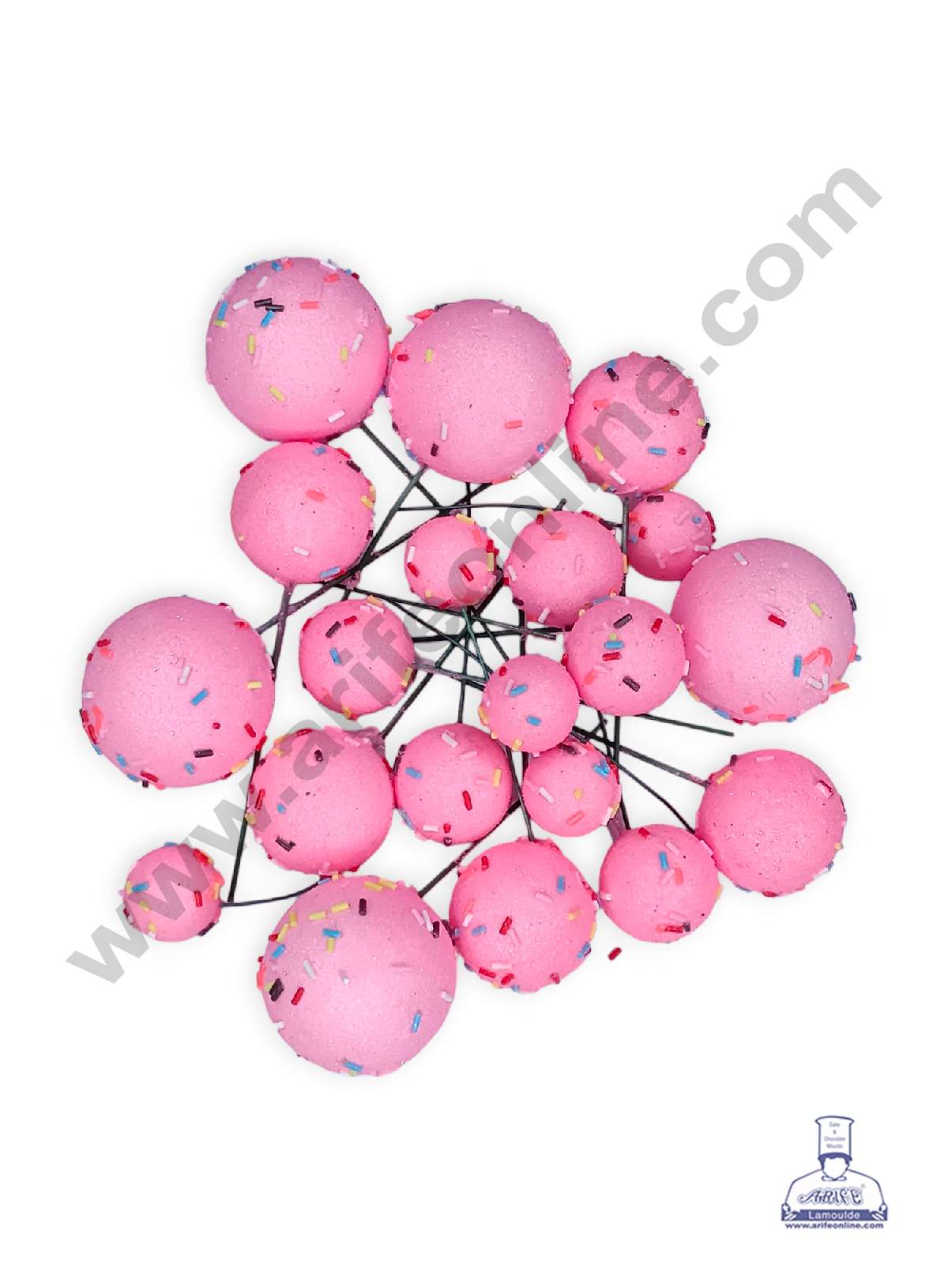 CAKE DECOR™ Glitter Pink with Sprinkles Faux Balls Topper For Cake and Cupcake Decoration – ( 20 pcs Pack )