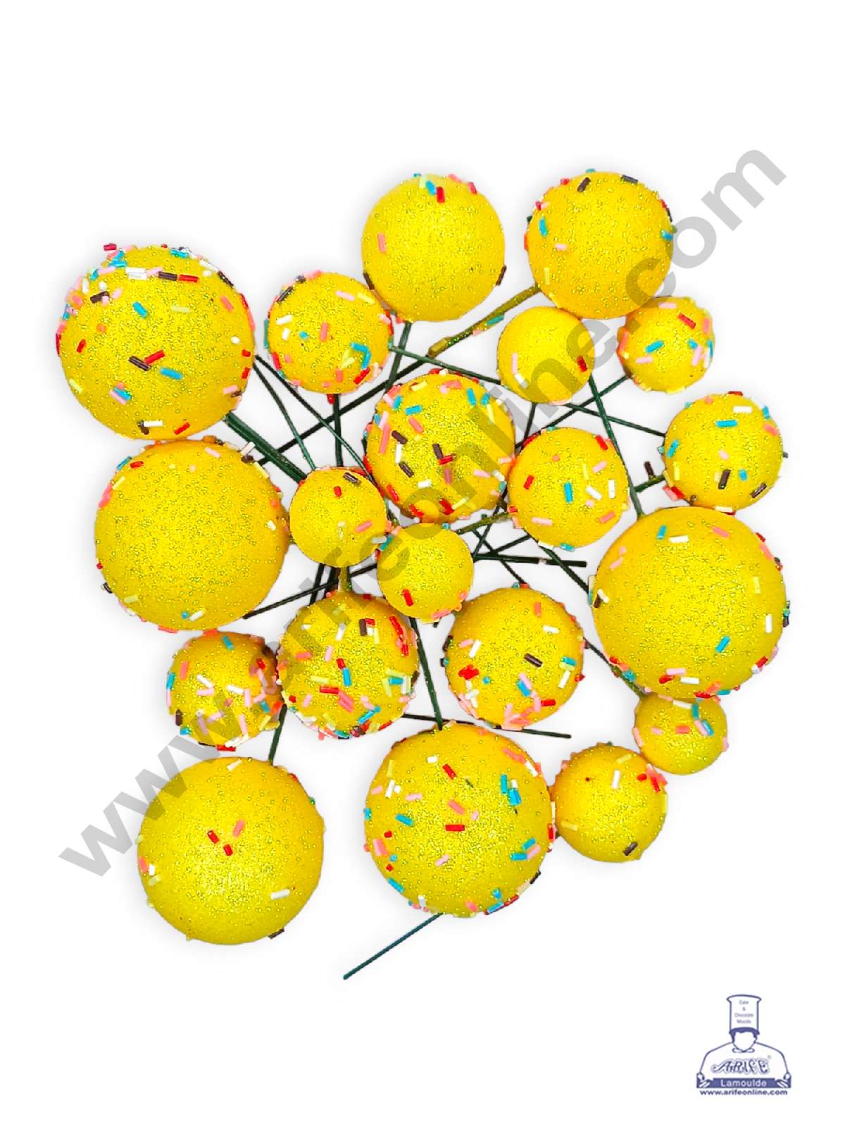 CAKE DECOR™ Glitter Yellow with Sprinkles Faux Balls Topper For Cake and Cupcake Decoration – ( 20 pcs Pack )