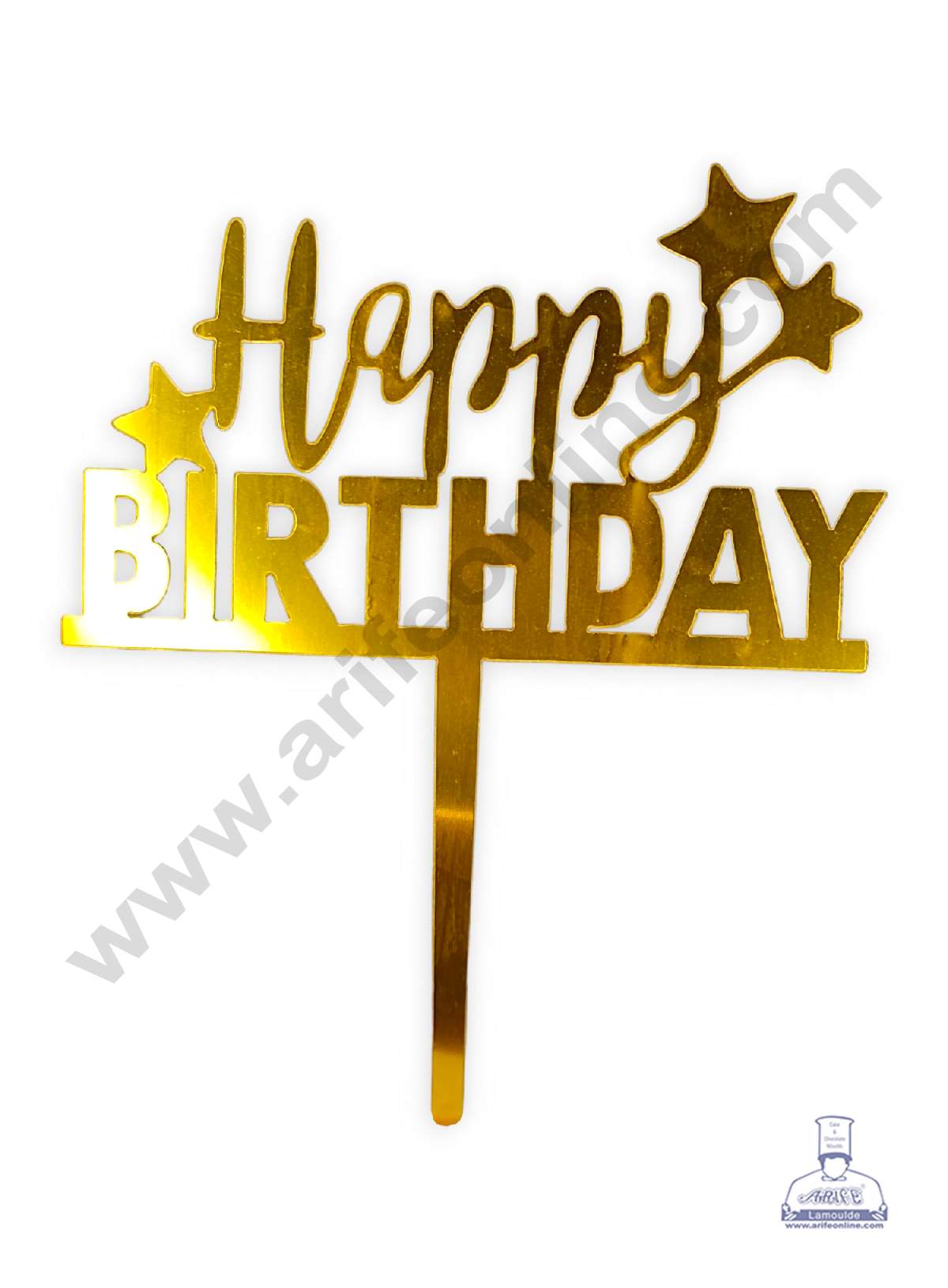 CAKE DECOR™ Gold Mirror Finishing Acrylic Happy Birthday with Stars Cake Topper SBMT-N-015