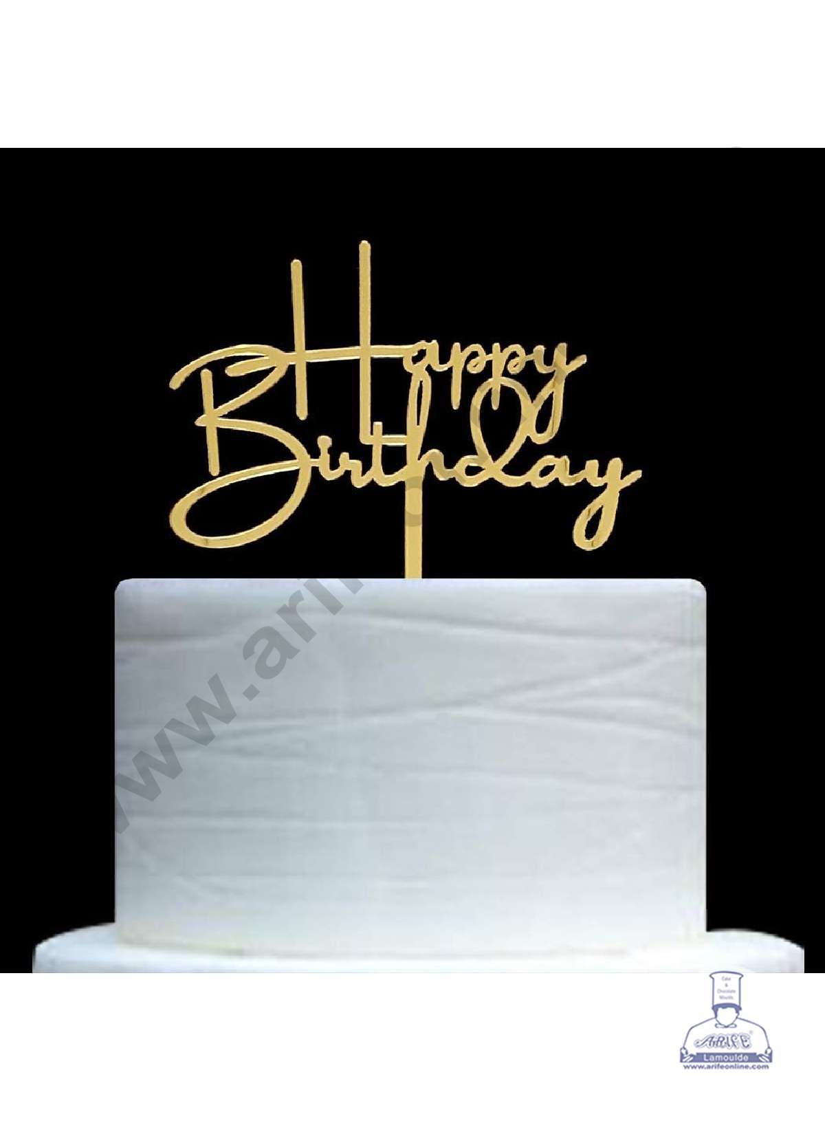 CAKE DECOR™ Gold Mirror Finishing Acrylic Simple Happy Birthday Cake Topper SBMT-N-004