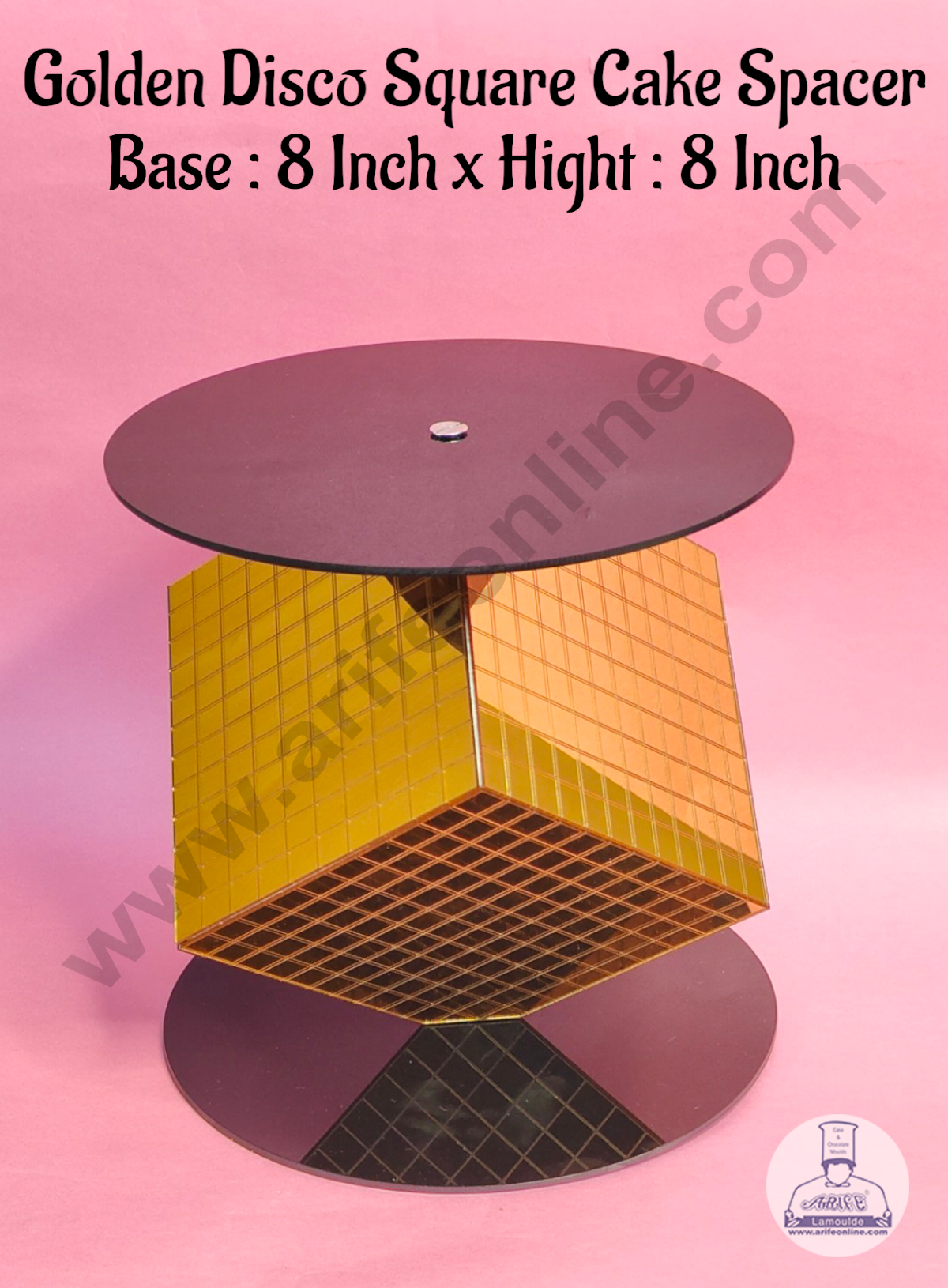 CAKE DECORβ’ Golden Disco Square Cake Spacer For Cake and Cupcake Decoration – Base 8 inch X Height 8 inch