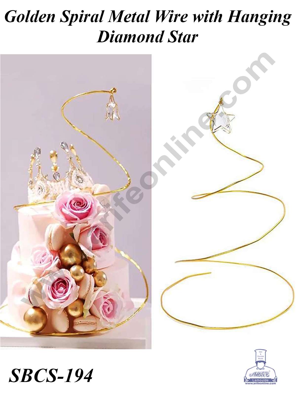 CAKE DECOR™ Golden Spiral Metal Wire with Hanging Diamond Star | Cake Decoration – 1 Piece Specifications: Size: 18 cm / 7.09 inch ~approximately. Material : Metal Package Includes : 1 Metal Wire x Crystal Star. Color : Gold Suitable for many occasions such as weddings, birthday parties, baby showers, anniversaries, garden parties, home decorations…