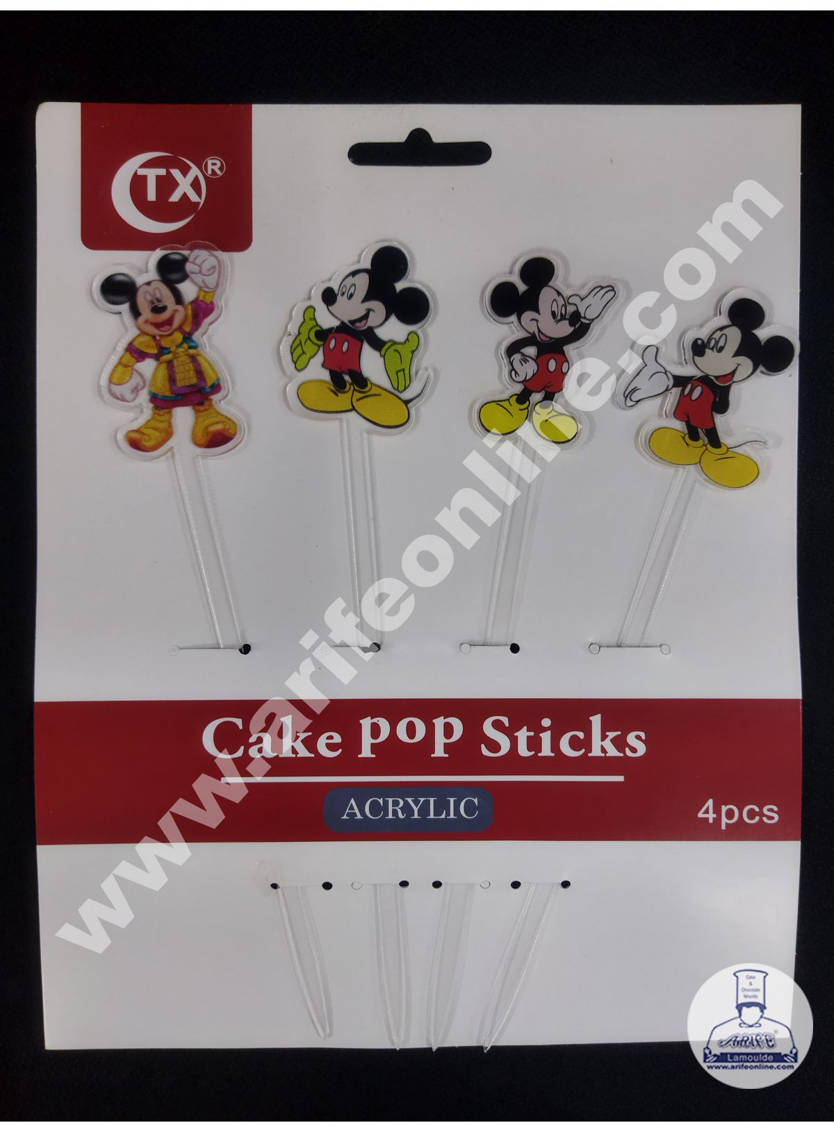 Cake Decor Imported Mirror Acrylic Cake and Cupcake Topper – 4 Pieces Mickey Mouse Theme