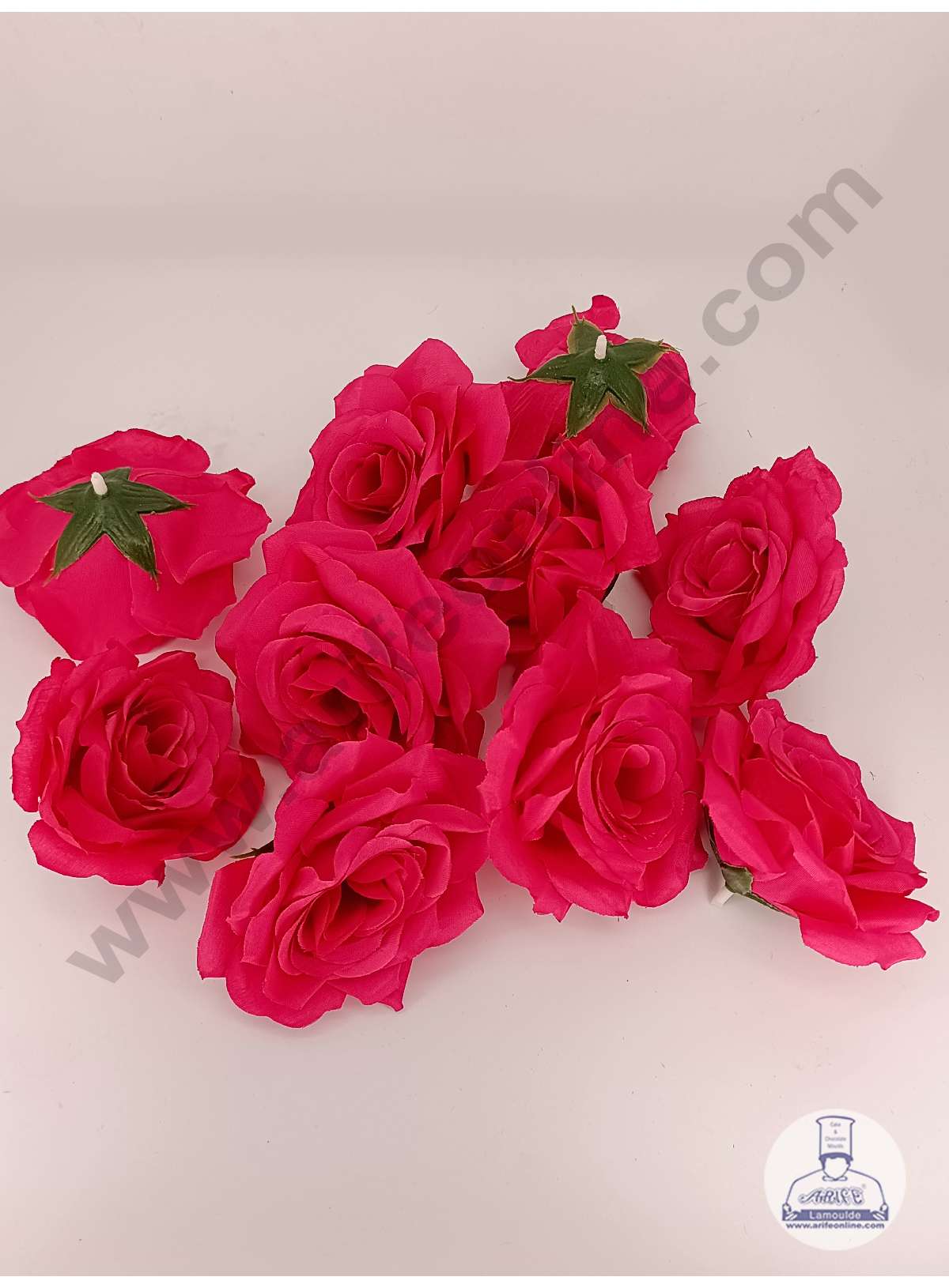 CAKE DECOR™ Large Rose Artificial Flower For Cake Decoration – Rani Pink ( 5 pc pack )