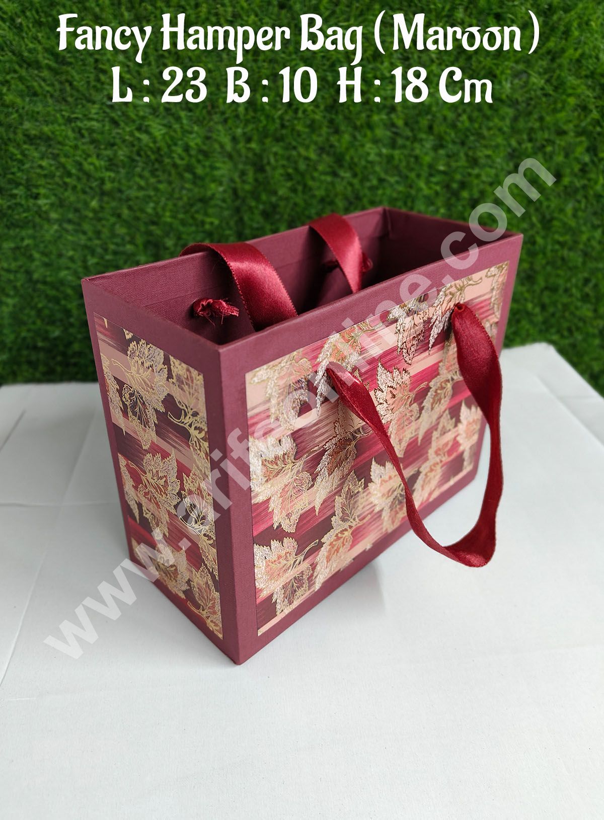CAKE DECOR™ Maroon Fancy Hamper Bag For for Birthday, Wedding, Celebrations, Party, Christmas Gifts (1 Pc Pack) Package Contains : 1 Piece Bag Colour : Maroon Gift Bag Size : 23 x 10 x 18  Cm Can be used for baby shower gifts, wedding gifts, corporate gift, etc . Your special bakes truly deserve a…