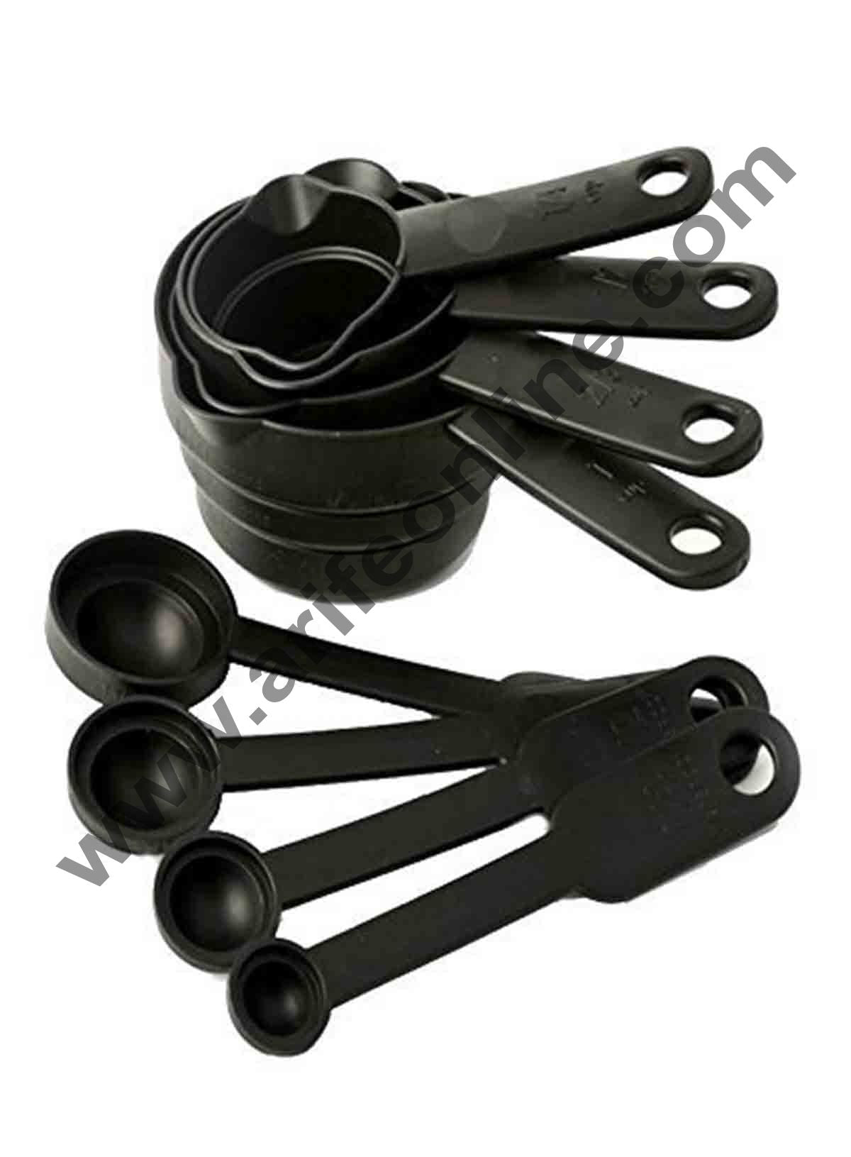Comprehensive Cup and Spoon Set Whether it’s trying a new recipe or baking an elaborate cake for your loved ones, a good set of spoons and measuring cup plays an indispensable role in your kitchen space. The set of plastic measuring cups and spoons is made from high quality plastic and is ideal for a wide variety of cooking purposes in your everyday life. Featuring a set of 4 measuring cups in capacities ranging from 60ml to 240ml and 4 spoons with capacities from 1.25ml to 15ml, it is a comprehensive solution to your needs. Smartly Designed for Everyday Use Featuring an ergonomic design with hands that are constructed for both left and right-handed use, the 8-piece plastic measuring cups and spoons set is perfect for all kinds of use. Furthermore, as they are easily stackable onto each other, storage of this set is a hassle-free process. From baking cakes and other desserts to cooking a complicated recipe, this set of spoons and measuring cups is your ideal companion. Easy to Clean and Maintain Made from high quality plastic, the plastic measuring cups and spoons set is easy to maintain. As this set is dishwasher safe, you can easily clean them without fear of deterioration. Manual wash is also a simple affair as all you need is a liquid soap solution to keep them looking new for a long time.