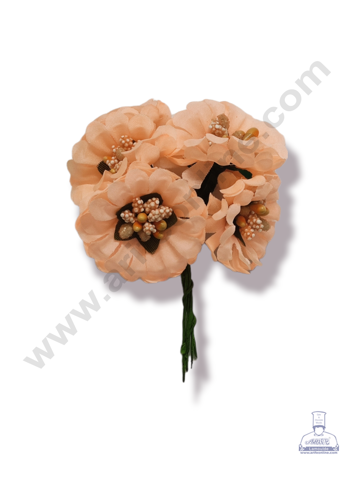 Cake Decor™ Medium Genda Flower With Pollen Artificial Flower For Cake Decoration – Peach ( 1 Bunch )