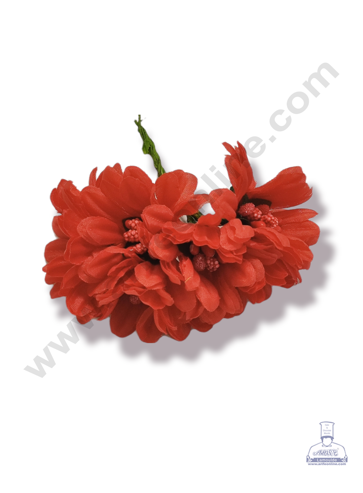 Cake Decor™ Medium Sunflower With Pollen Bunch of 6 Pcs – Red