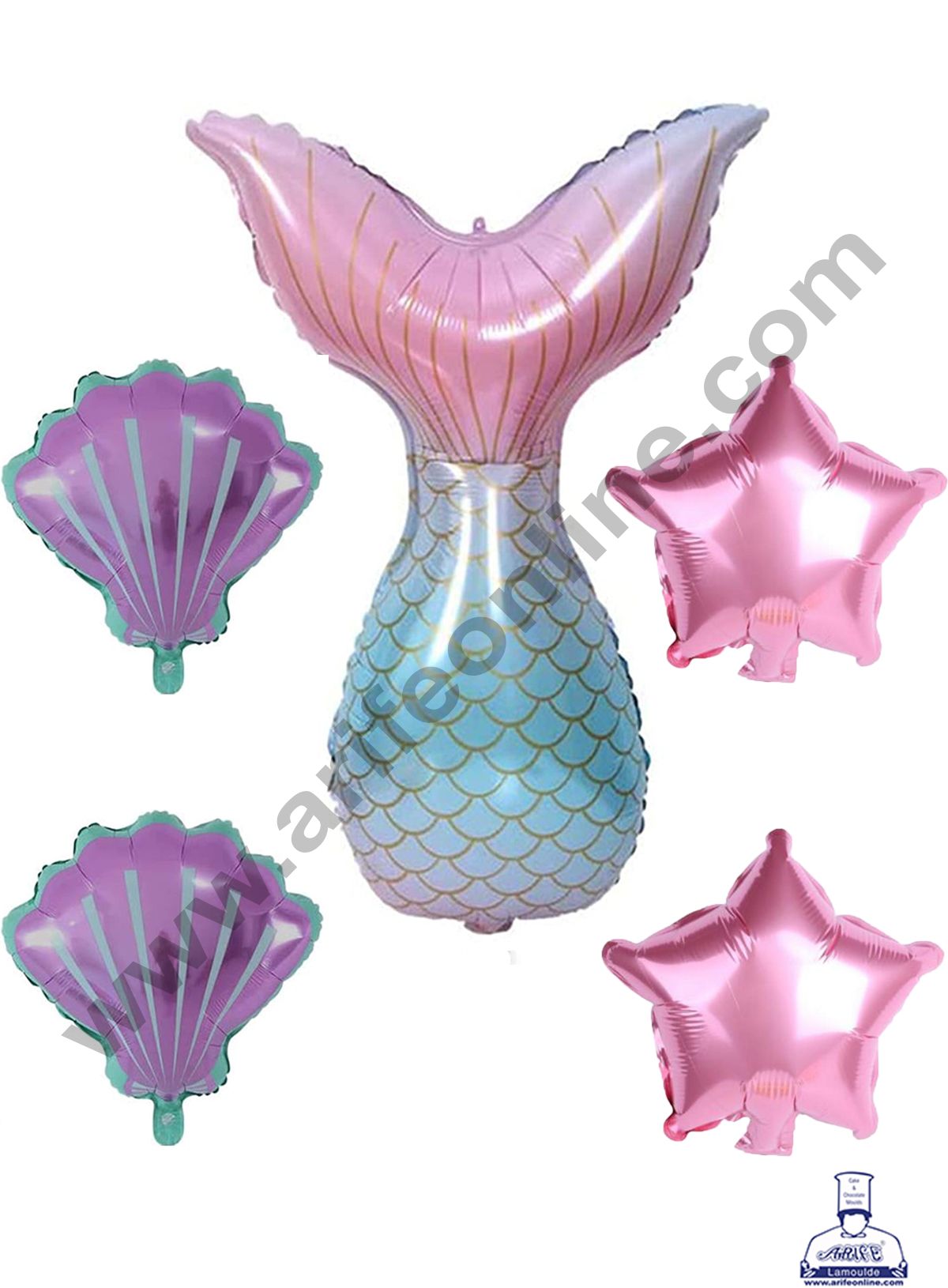 Cake Decor Mermaid Tail Foil with Star and Shell Foil Balloons Set For Party Balloon Decoration (Pack of 5 pc )