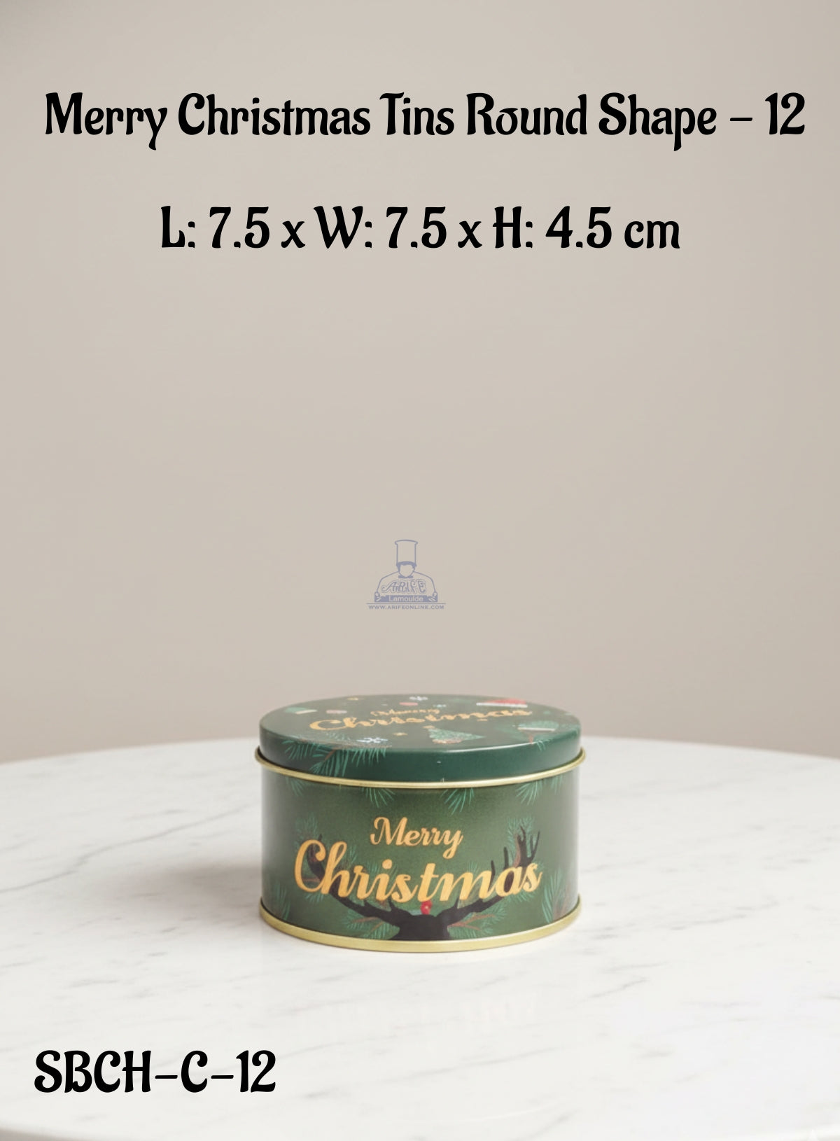 Cake Decor β’ Merry Christmas Tins Round Shape – 12 | L: 7.5 x W: 7.5 x H: 4.5 cm| Round Storage Containers Tins | 1 Pc Pack