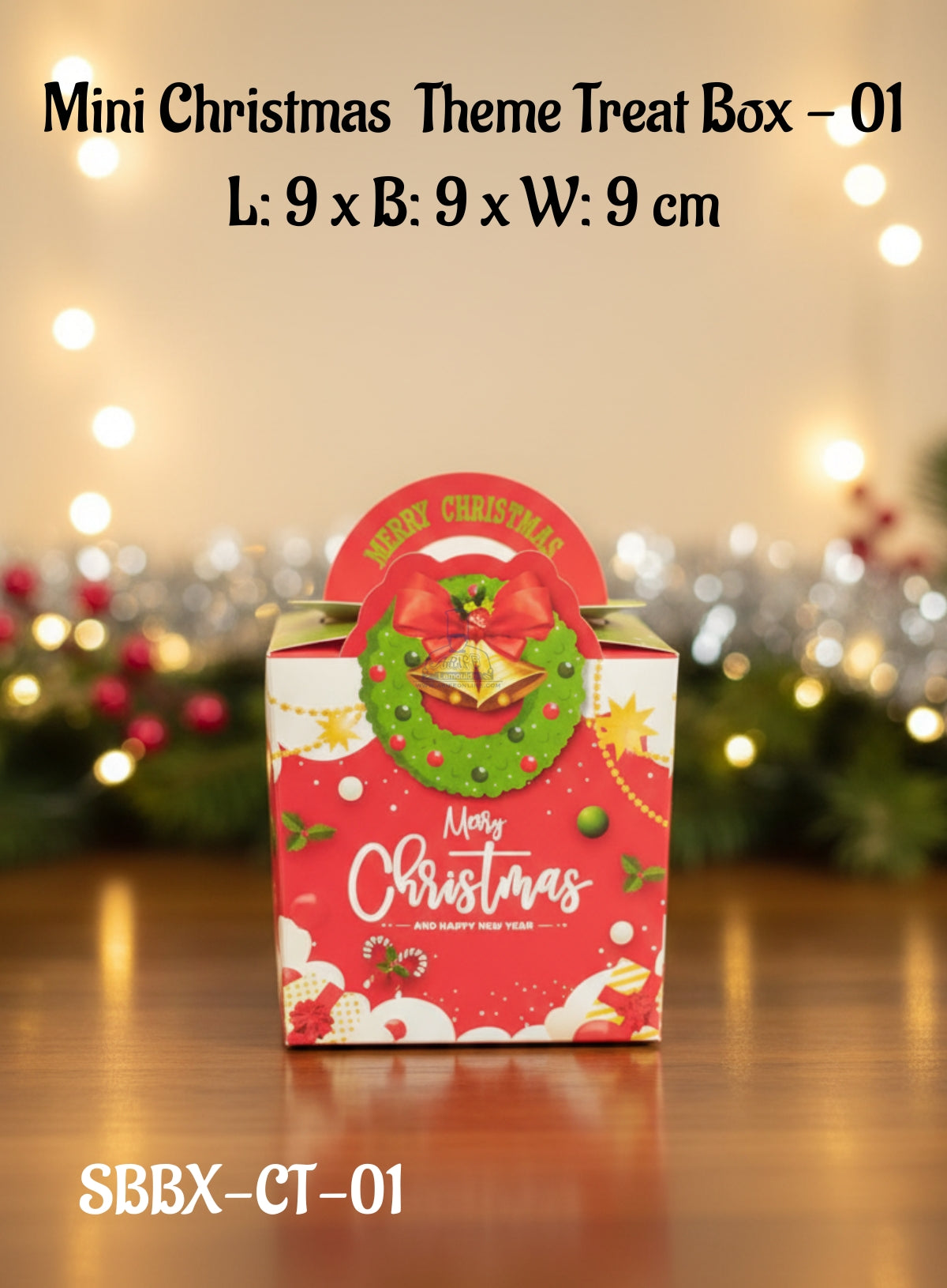 CAKE DECOR™ Mini Christmas Theme Treat Box – 01 | L: 9 x B: 9 x W: 9 cm |Gift Box | Candy Box | Cookies Box | Sweet Treats Box| SBBX-CT-01 (10 Pcs Pack)