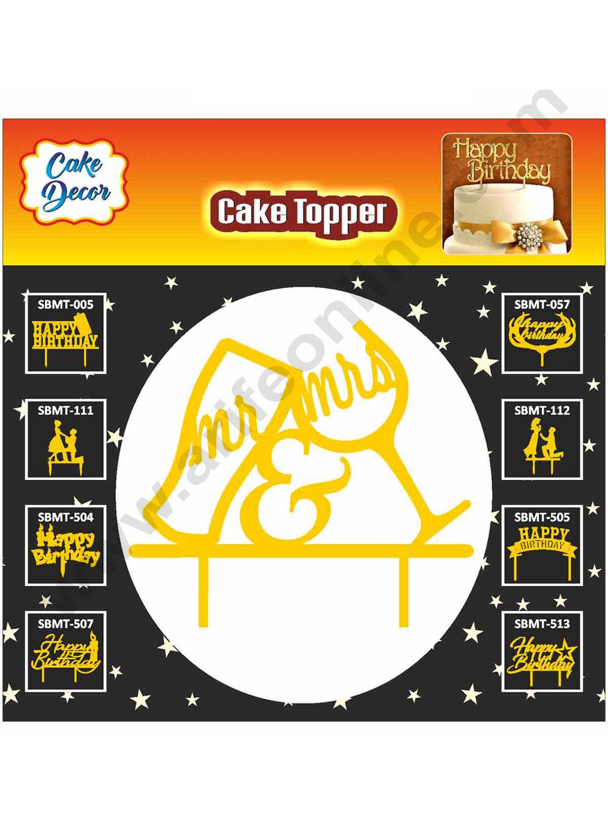 Cake Decor Mirror Shimmer Shining Acrylic Cake Topper Mr. and Mrs. with Glass and Bottle SBMT-802 cake topper mirror, in Golden mirror acrylic. Acrylic Mirror Finish Cake Toppers. Perfect for any occasion. Many designs including Happy Birthday, 25 Years, 50 Years,happy Anniversary and more. Celebrate your Ocassion with this adorable cake topper. Perfect for photos…