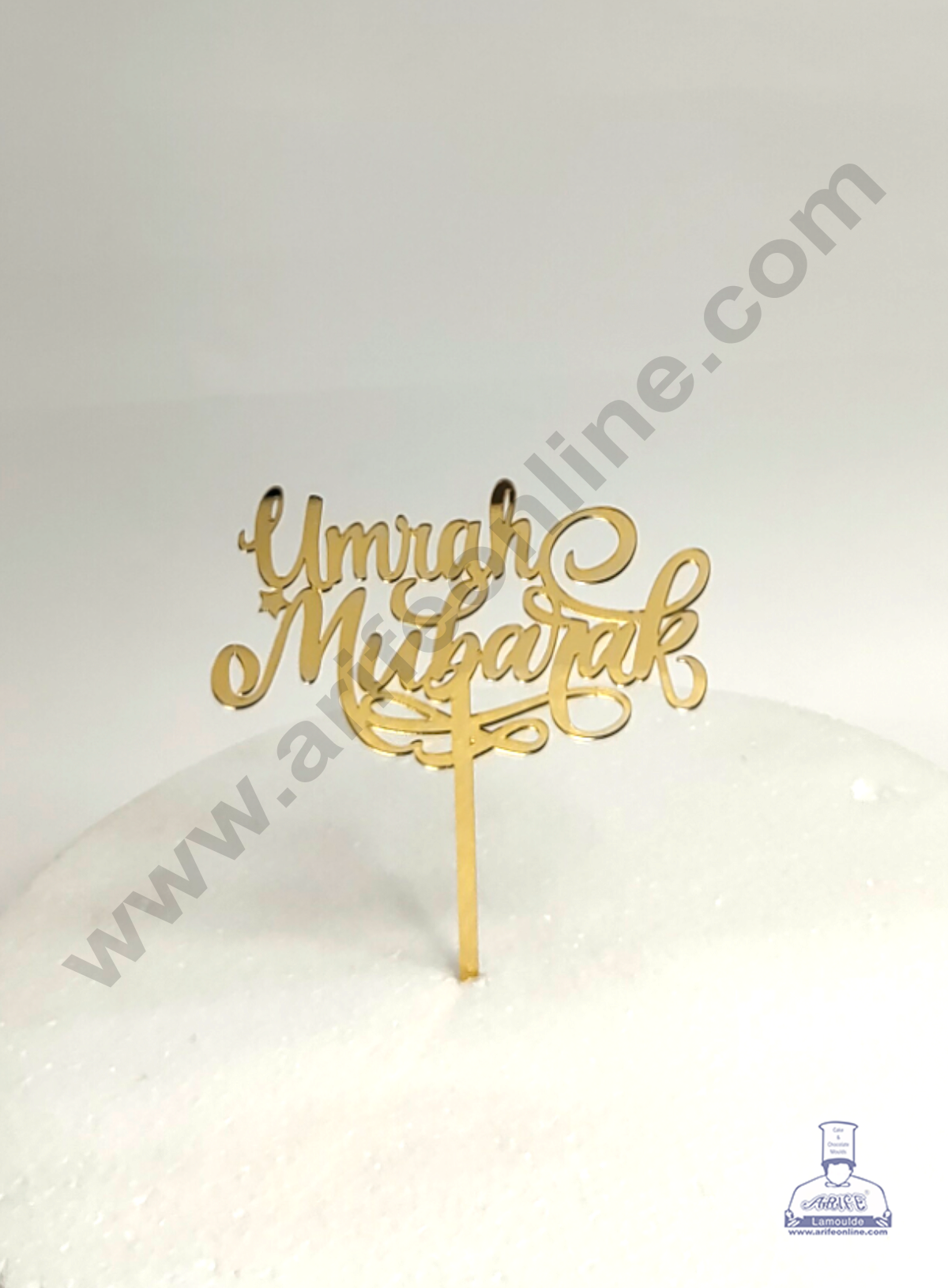 Cake Decor™ Mirror Shimmer Shining Acrylic Cake Topper Umrah Mubarak With Star