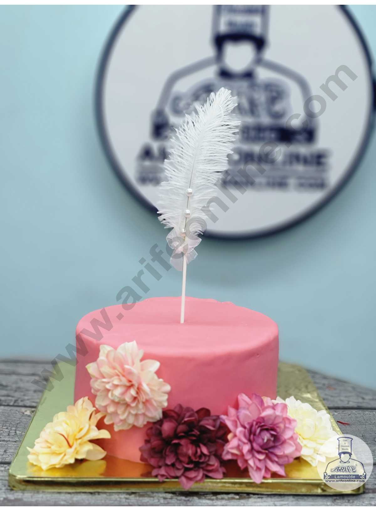 CAKE DECORβ’ Ostrich Feather With Pearls Topper For Cake Decorations – White ( 1 pc Pack )