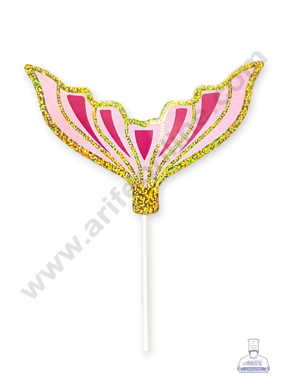 CAKE DECOR™ Pink Mermaid Tail with Sparkle Border Paper Cake Topper (SBPT-MT-Pink)