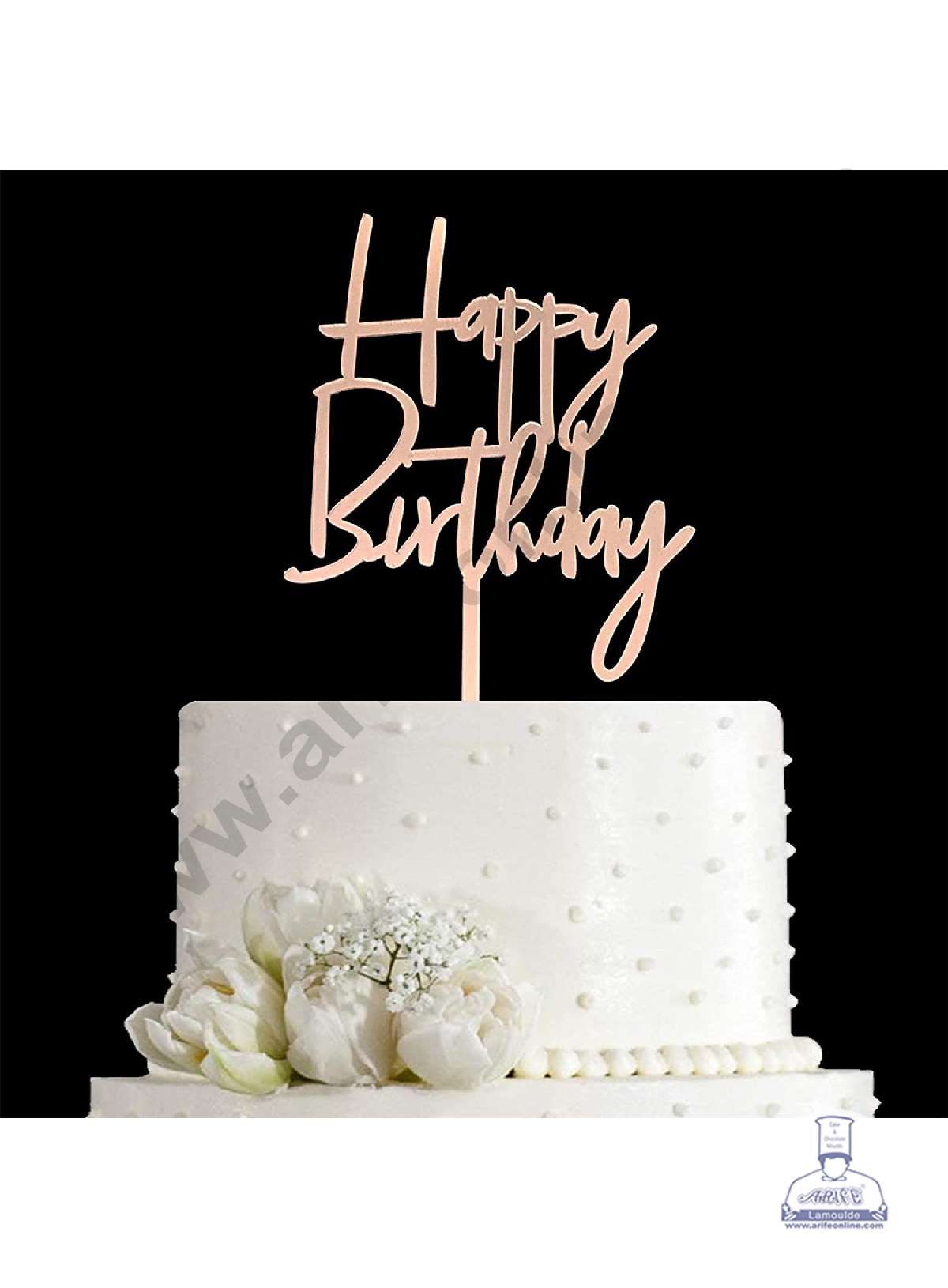 CAKE DECOR™ Pink Mirror Finishing Acrylic Simple Happy Birthday Cake Topper SBMT-N-005