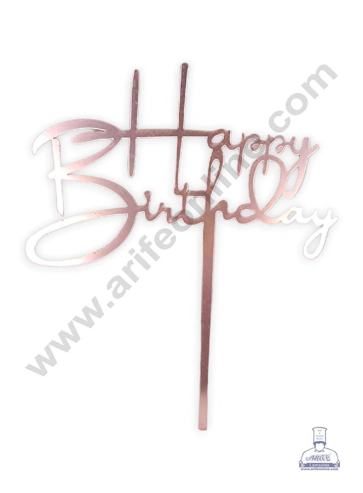 CAKE DECOR™ Pink Mirror Finishing Acrylic Simple Happy Birthday Cake Topper SBMT-N-022