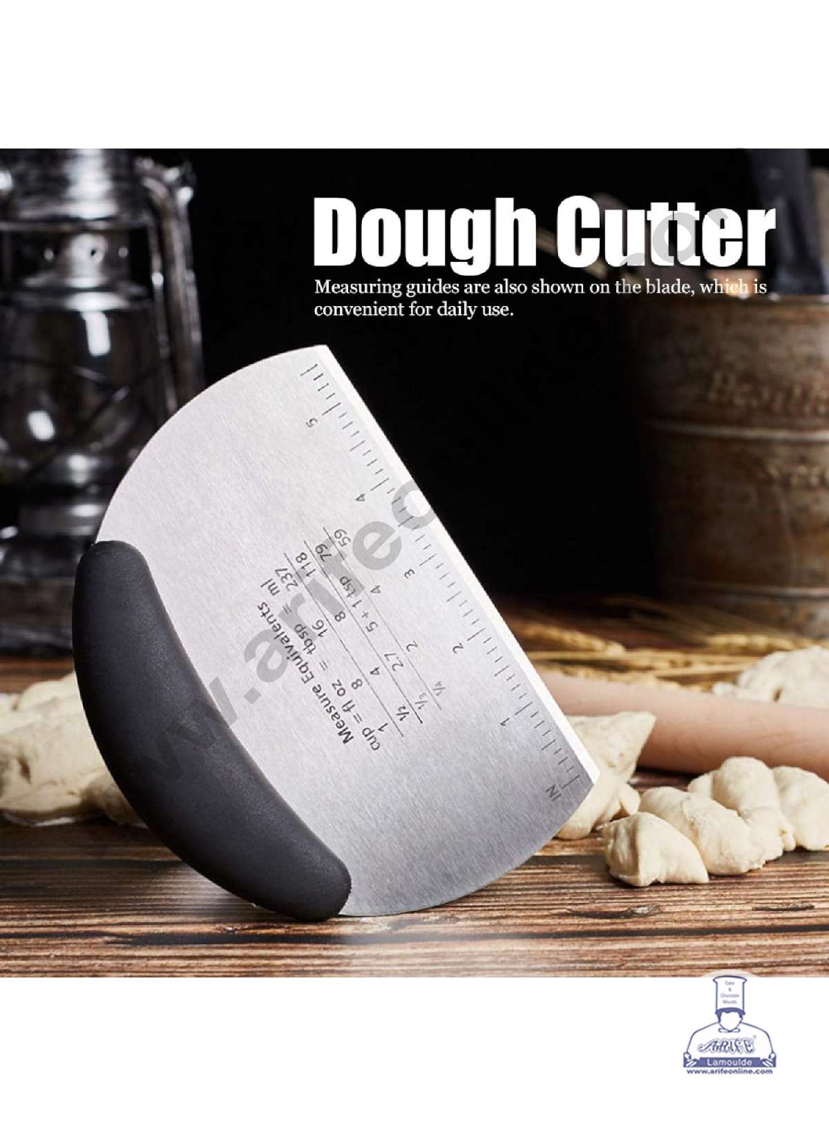 Color:Stainless Steel Handle An essential tool for the professional pastry chef or bread-maker, this dough scraper features a sturdy steel handle and a durable stainless steel for easy scraping, lifting, and cleaning. Professional quality, and dishwasher safe. Practical durable and multi-duty; Suitable for dough and pizza scraper; Stainless steel blade,easy to use and clean; Great for family / hotel /restaurant / bread baker; A professional dough scraper tool with scale and more convenient to use.