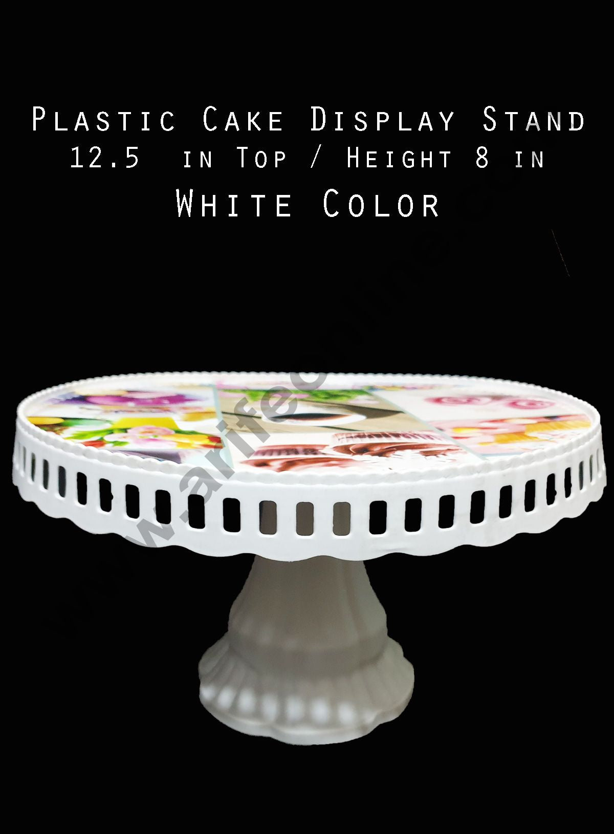 Cake Display Stand Great way to display your cake, pastries, pizza, etc in the dining. It comes in knock down format and the customer has to just screw the 2 parts together. It comes in knock down format and the customer has to just screw the 2 parts together. Present your next birthday cake with style on this Plastic cake stand.