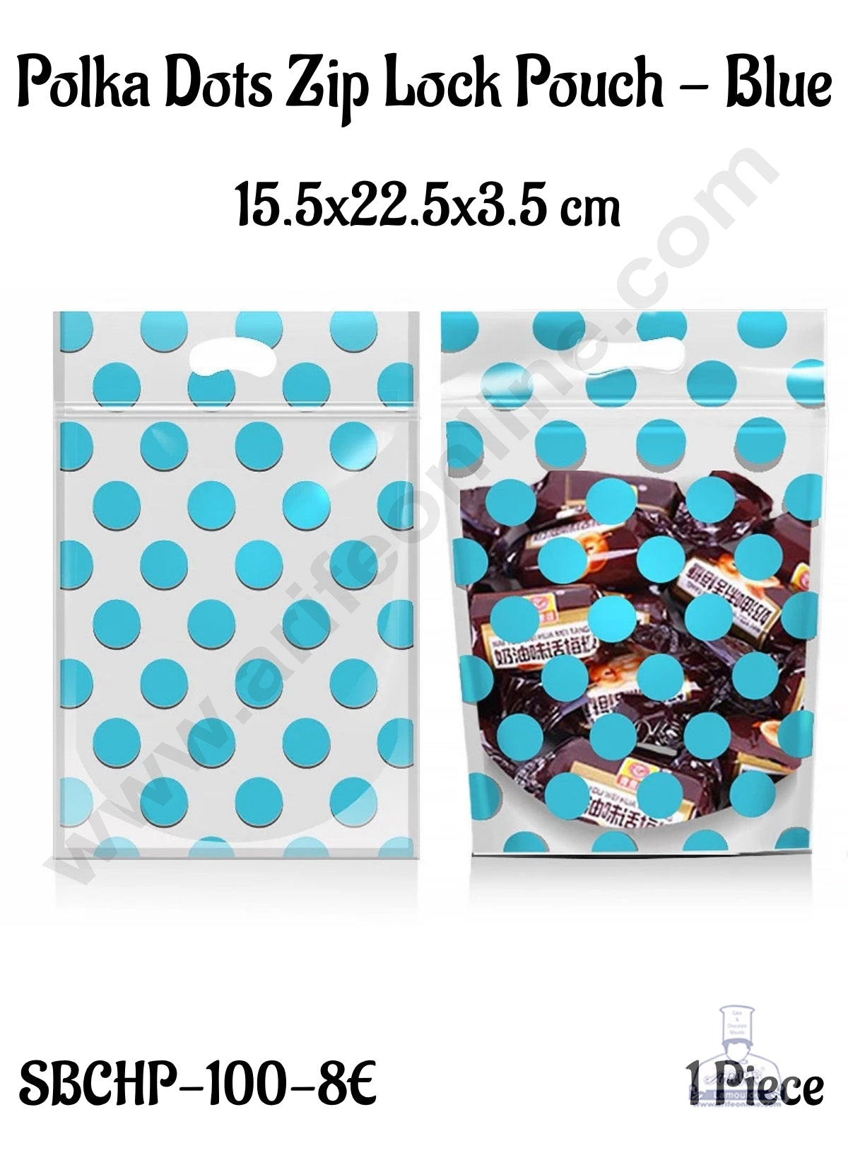 CAKE DECORβ’ Polka Dots Zip Lock Pouch – Blue| 15.5×22.5×3.5 cm (SBCHP-100-8E)| 1 Piece