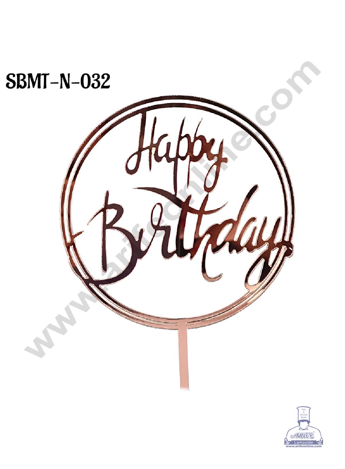 CAKE DECOR™ Rose Gold Acrylic Happy Birthday in Double Round Frame Cake Topper SBMT-N-032