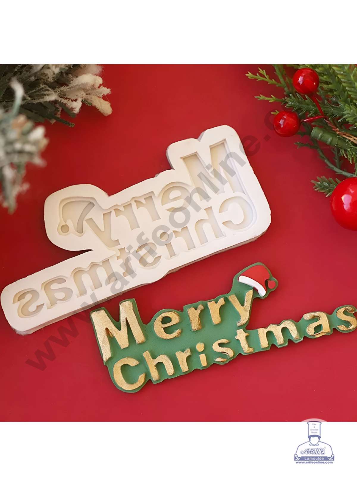 CAKE DECOR™ Silicon 1 Cavity Merry Christmas with Santa Claus Cap Fondant Clay Marzipan Cake Decoration Mould SBSP-DYF7206