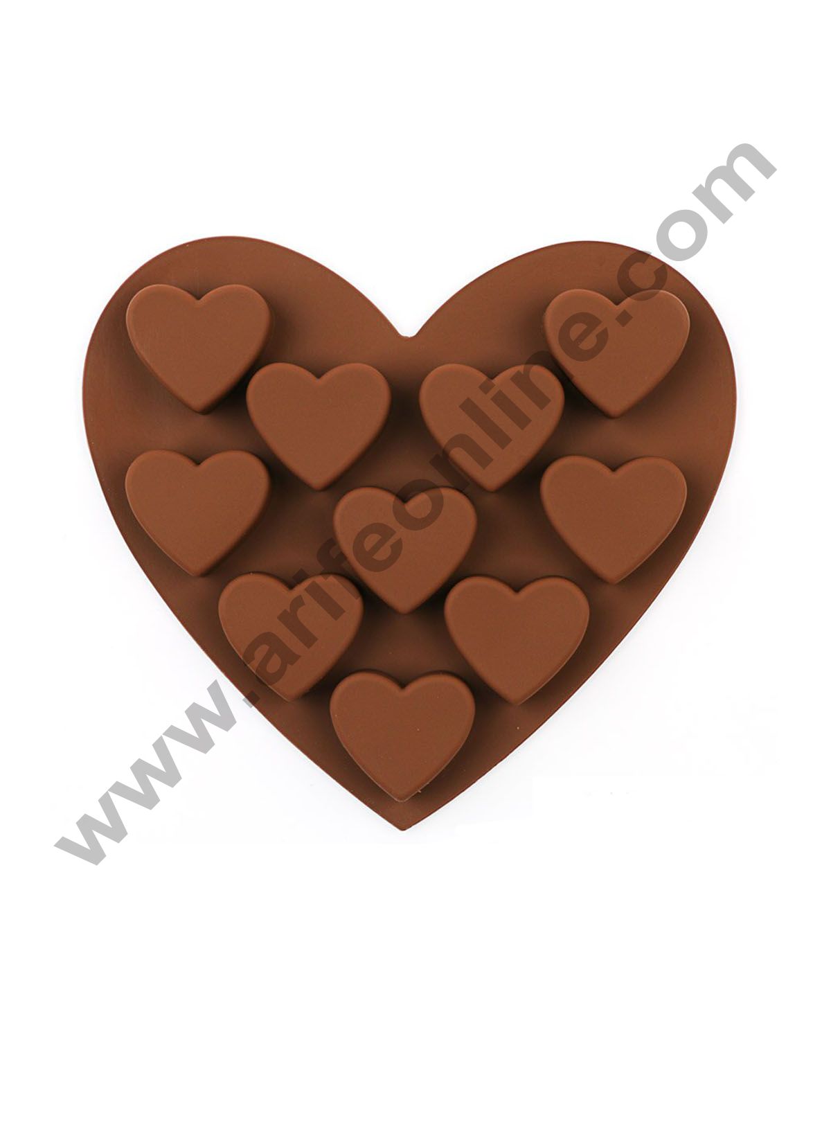 Cake Decor Silicon 10 Cavity Heart Shape Design Chocolate Mould Ice, Jelly Candy Mould