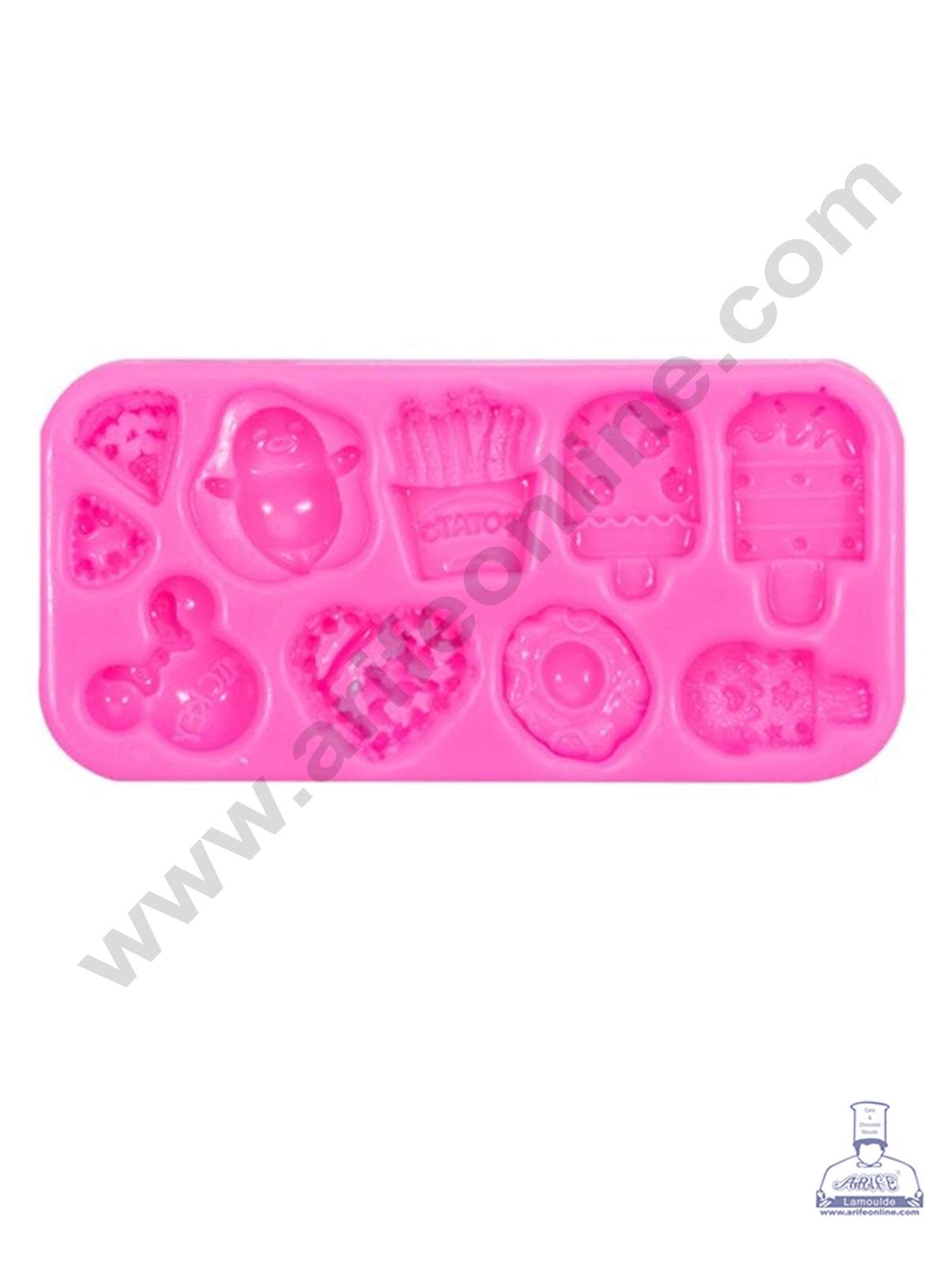 CAKE DECOR™ Silicon 10 Cavity Ice Cream Potato Pizza Slice Shape Silicone Fondant Mold Silicon Marzipan Mould SBSP‐DYF6401