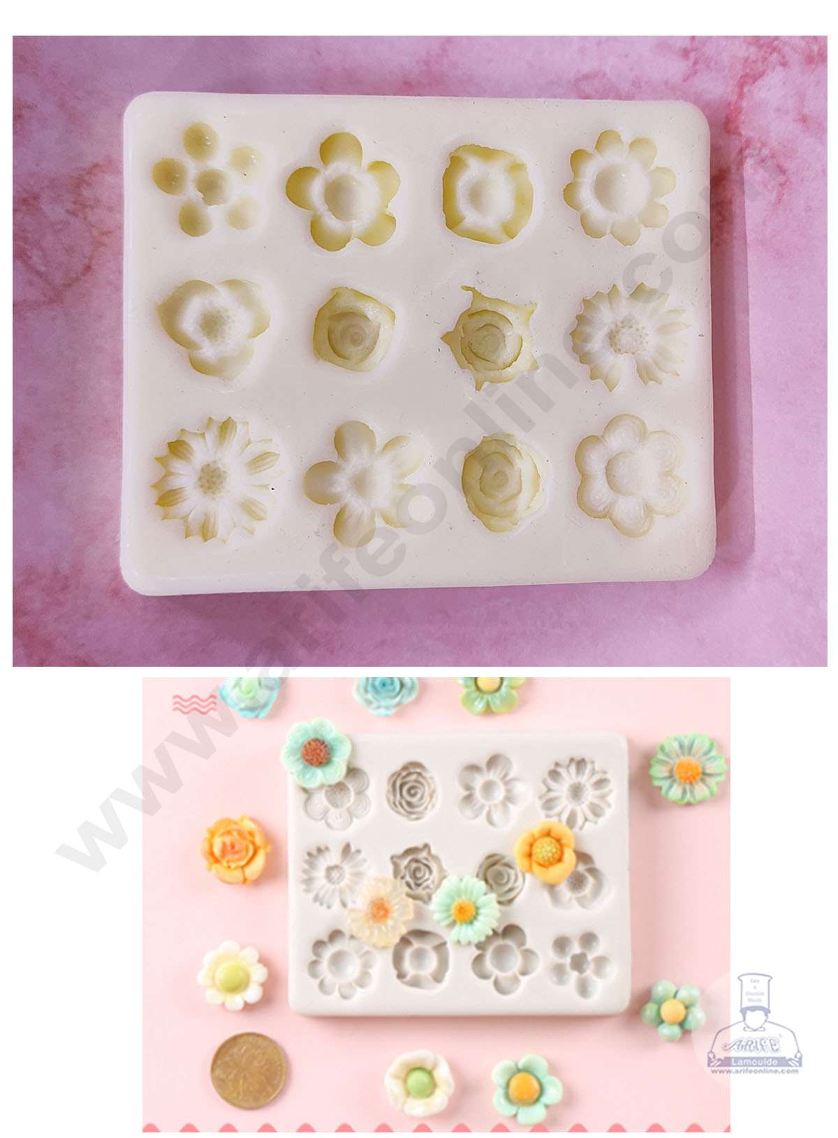 Cake Decor™ Silicon 12 Cavity Rose Sunflower Blossom Peach Flowers Shape Cake Fondant Mould SBSP-DYF6011