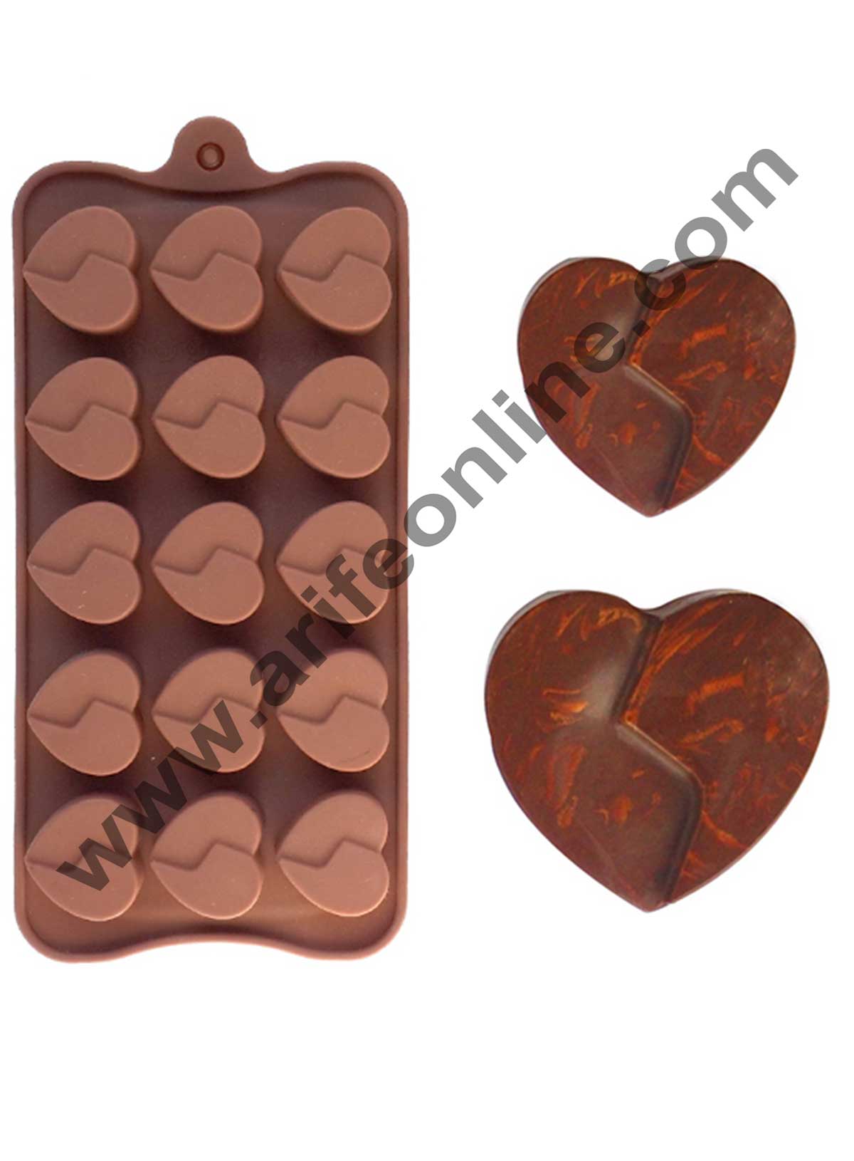 Cake Decor Silicon 15 Cavity Double Heart Shape Brown Chocolate Mould, Ice Mould, Chocolate Decorating Mould
