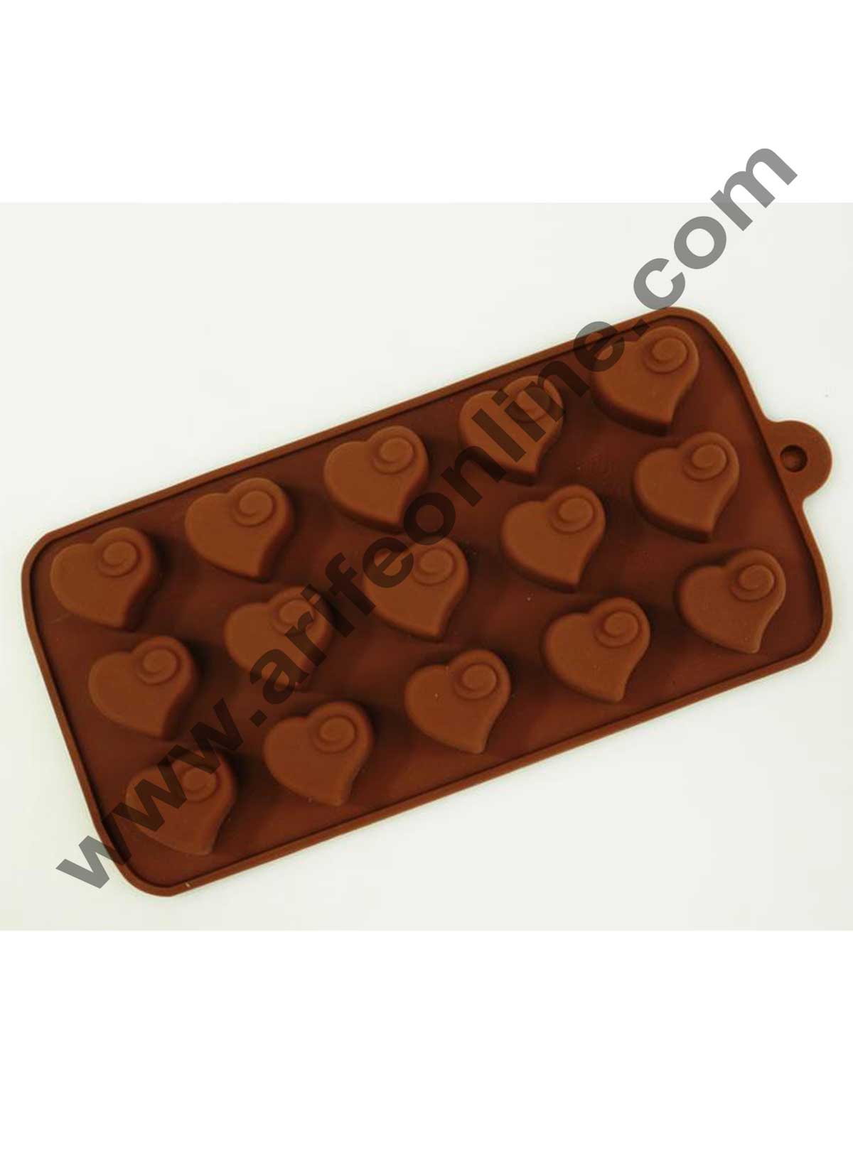 Cake Decor Silicon 15 Cavity Heart Design Brown Chocolate Mould, Ice Mould, Chocolate Decorating Mould