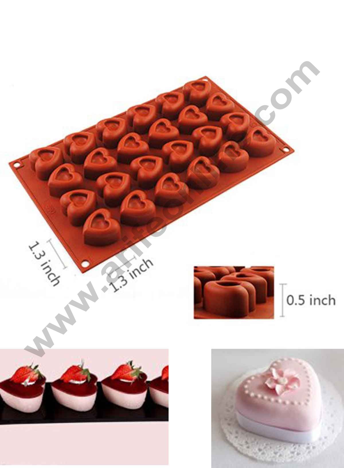 Cake Decor Silicon 24 Cavity Heart Shape Muffin Cupcake Mould Silicon Moulds that are perfect as they do not crack easily as the plastic ones even while frozen. These Silicon moulds are foldable & can be stored easily hence saves space. Most Noteworthy they also retains original shape when taken out. The Mould has Non-Stick…