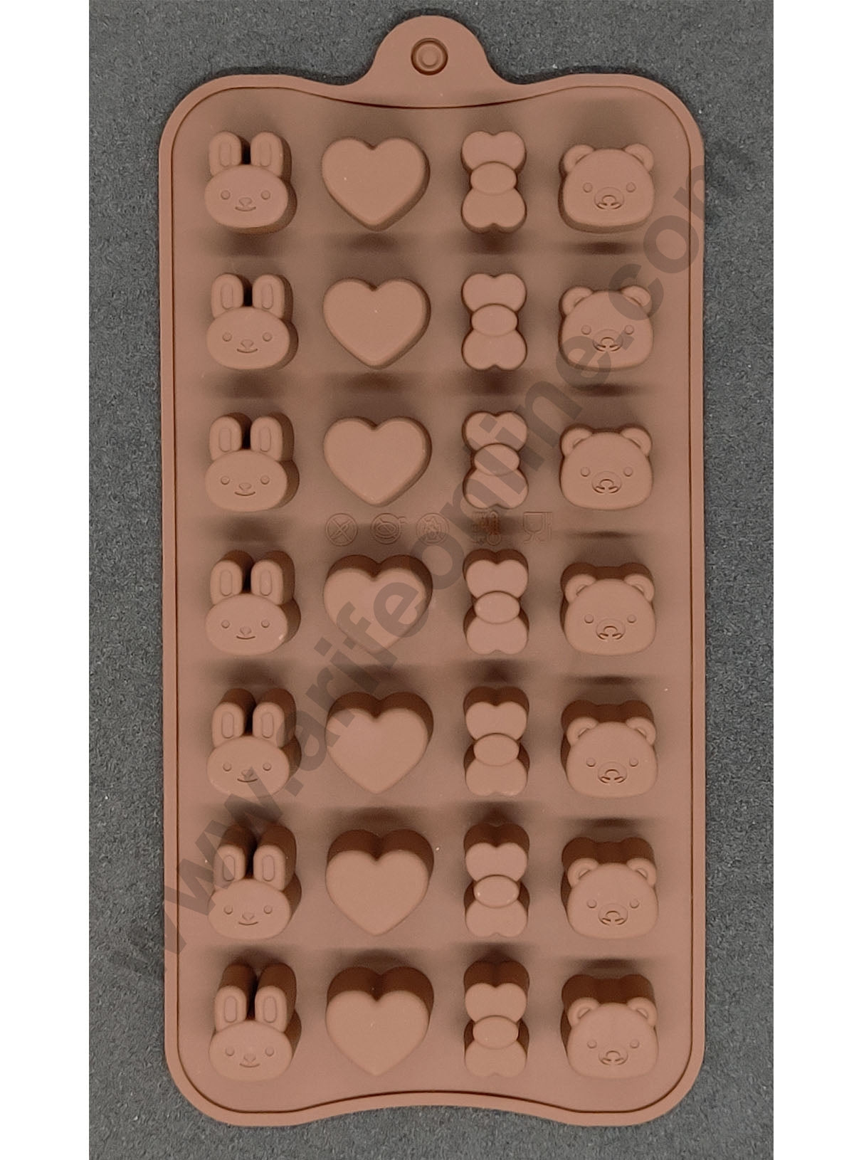 Cake Decor Silicon 28 Cavity Heart Bow Teddy Design Brown Chocolate Mould, Ice Mould, Chocolate Decorating Mould