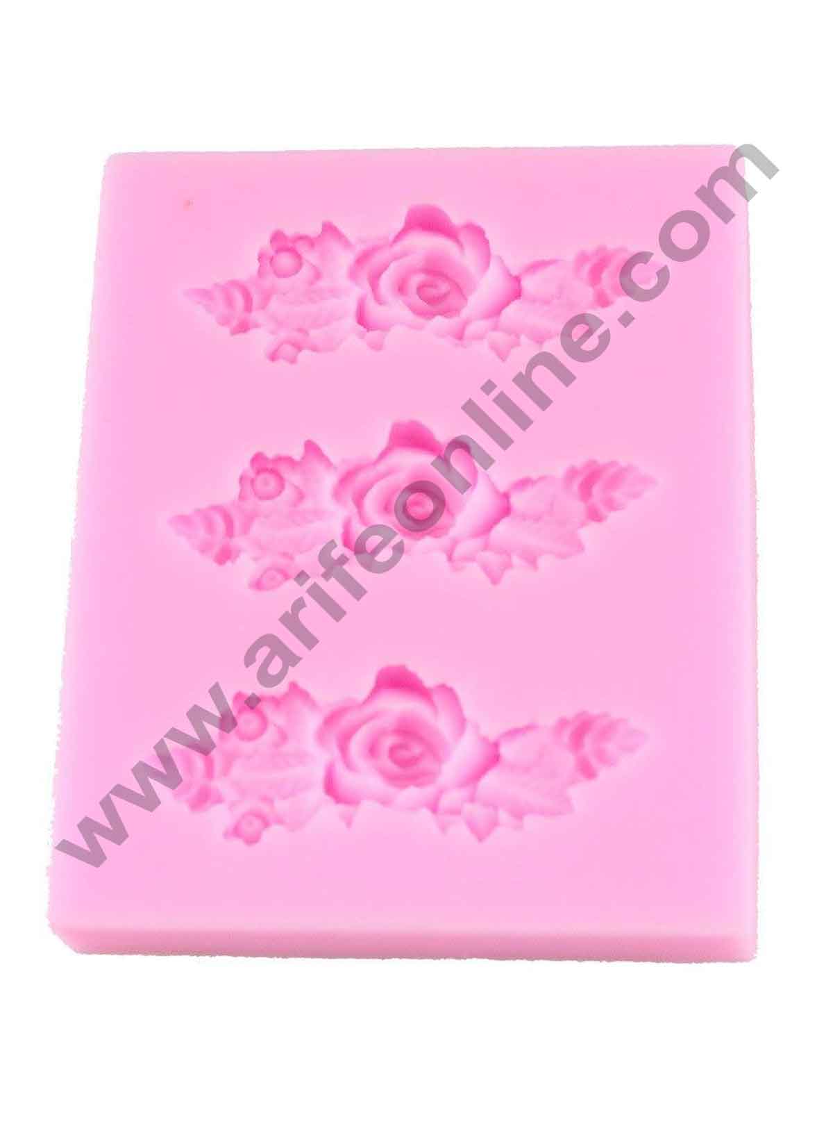 Cake Decor Silicon 3 Cavity Rose Border Silicone Fondant Mould