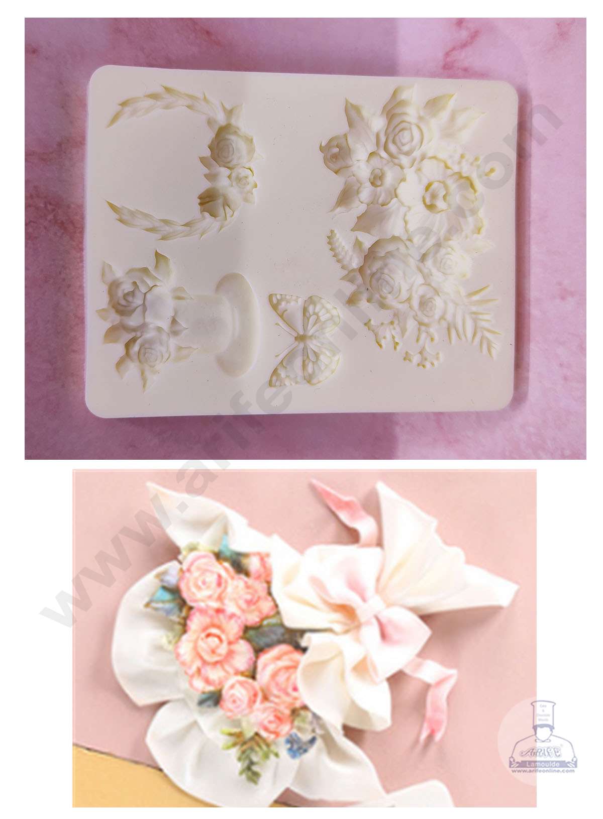 Cake Decor™ Silicon 4 Cavity Different Rose Bouquet and Butterfly Shape Cake Fondant Mould SBSP-DYF6014