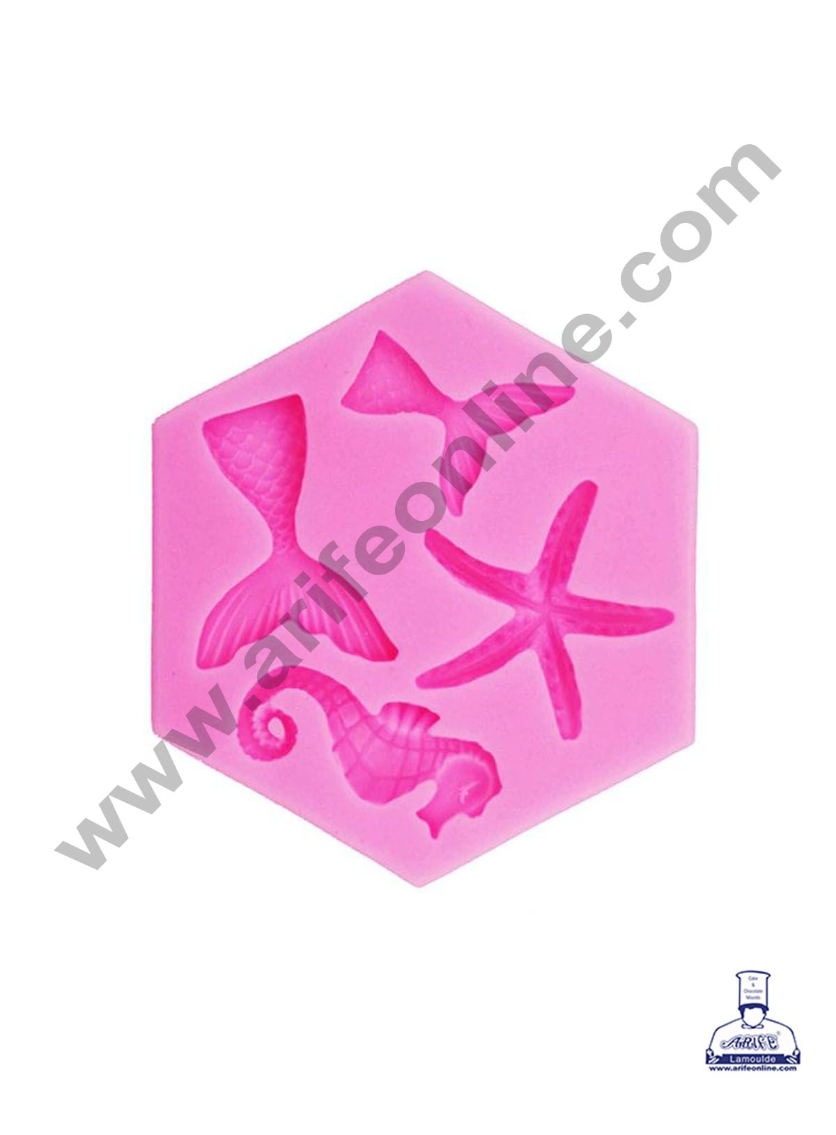 Cake Decor Silicon 4 Cavity Mermaid Tail Seahorse and Starfish Fondant Clay Marzipan Cake Decoration Mould SBSP-F1053YX