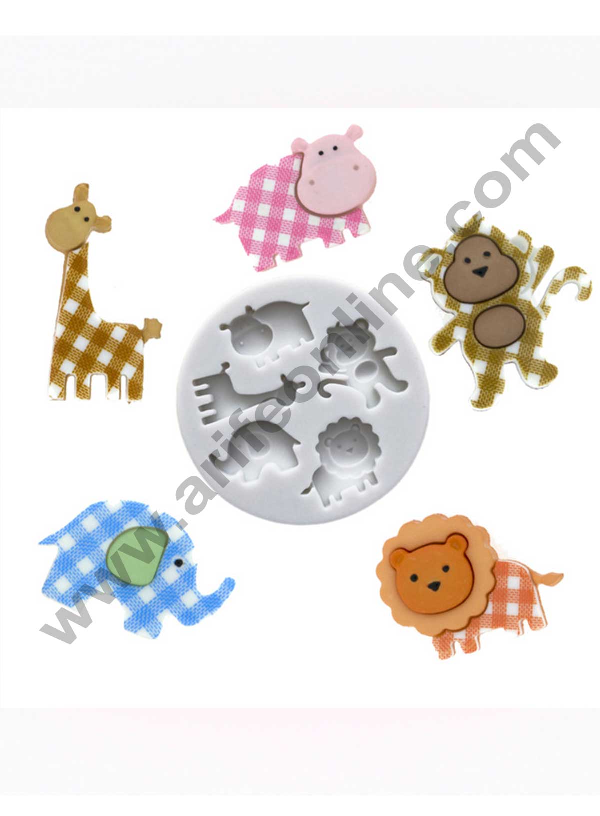 Cake Decor Silicon 5 Cavity Animals Tiger Monkey Cow Elephant Giraffe Silicone Fondant Mould