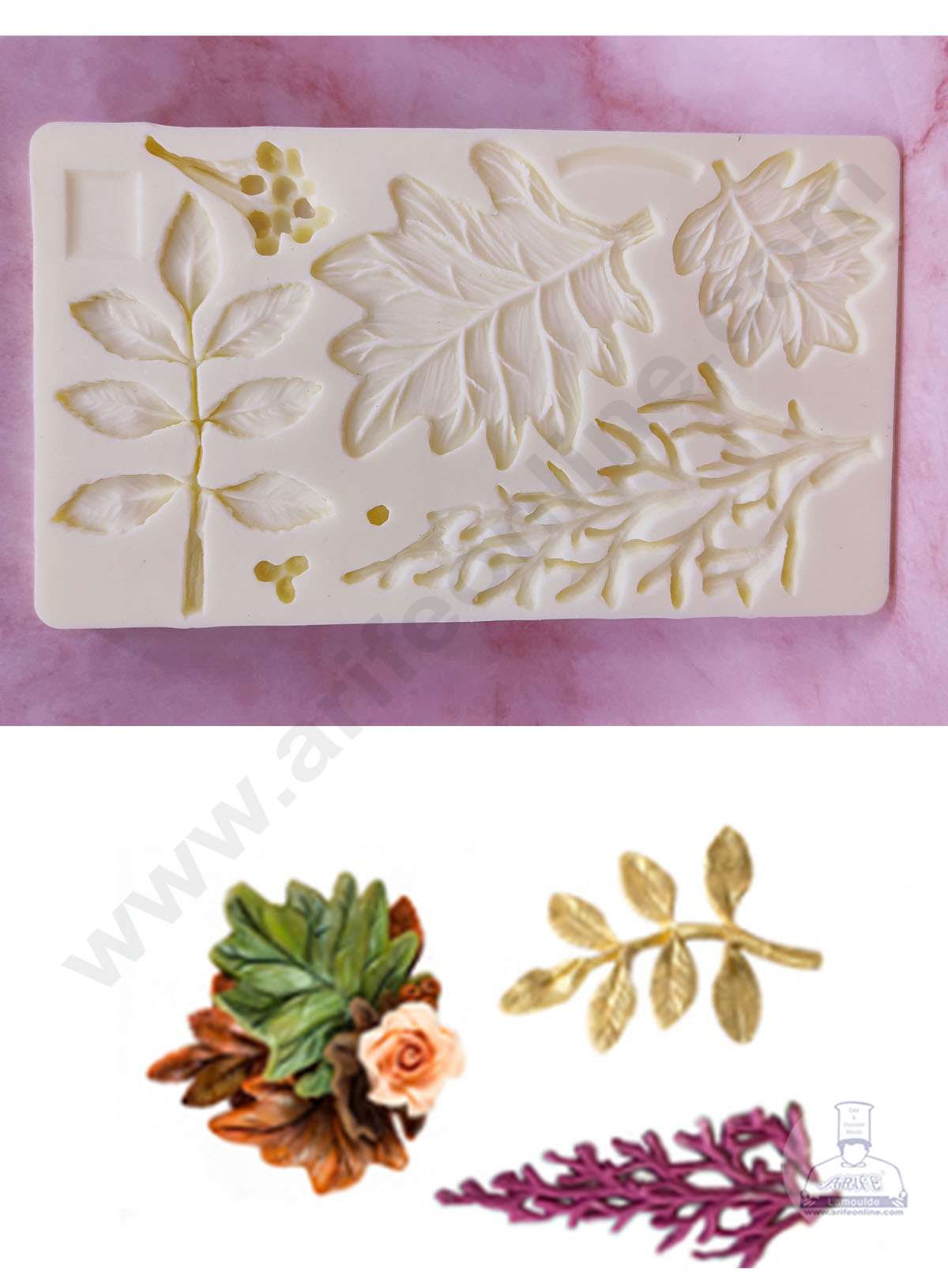 Cake Decor™ Silicon 5 Cavity Different Leafs Shape Cake Fondant Mould SBSP-DYF6010 Made of silicone material, tasteless, non-toxic, flexible, dust resistant, reusable, non-stick and easy to clean. Suitable for making cake decoration, bread, mousse, jelly, prepared food, chocolate, etc. Be safe to use in ovens, microwaves, dishwasher, and refrigerator. Silicon moulds are the quickest and…