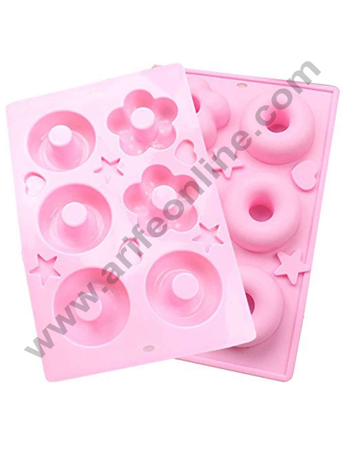 Cake Decor Silicon 6 Cavity Round and Flower Donut mould Shape Muffin Cupcake Mould