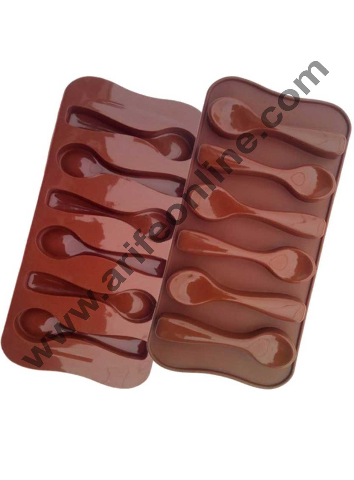 Cake Decor Silicon 6 Cavity Spoon Design Brown Chocolate Mould, Ice Mould, Chocolate Decorating Mould