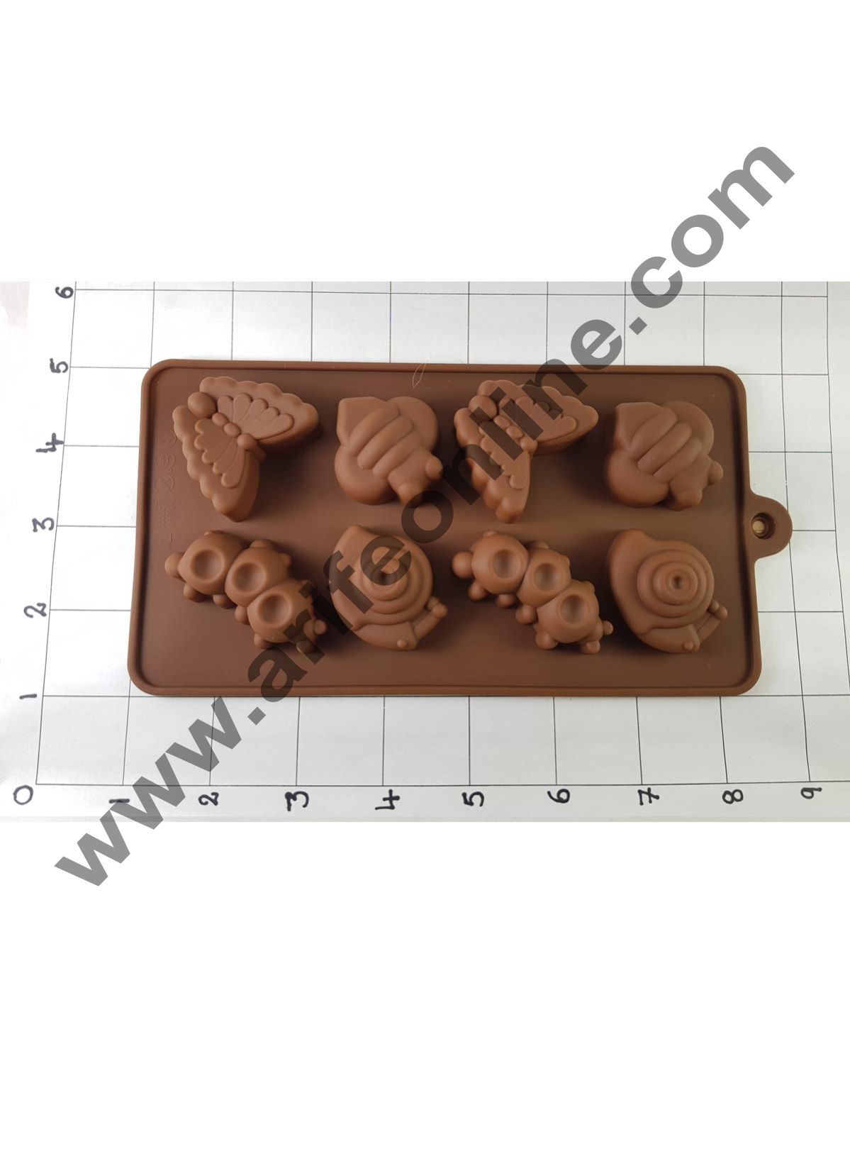 Cake Decor Silicon 8 Cavity Butterfly And Catterpilar Shape Brown Chocolate Mould, Ice Mould, Chocolate Decorating Mould