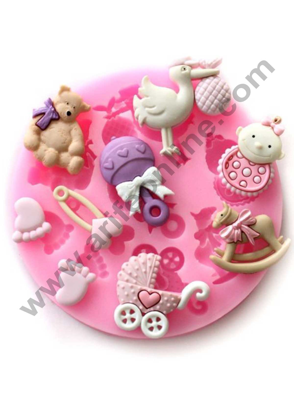 Cake Decor Silicon 9 Cavity Baby Feet Pins Teddy Bear Baby Stroller bird Horse Cart Silicone Fondant Mould