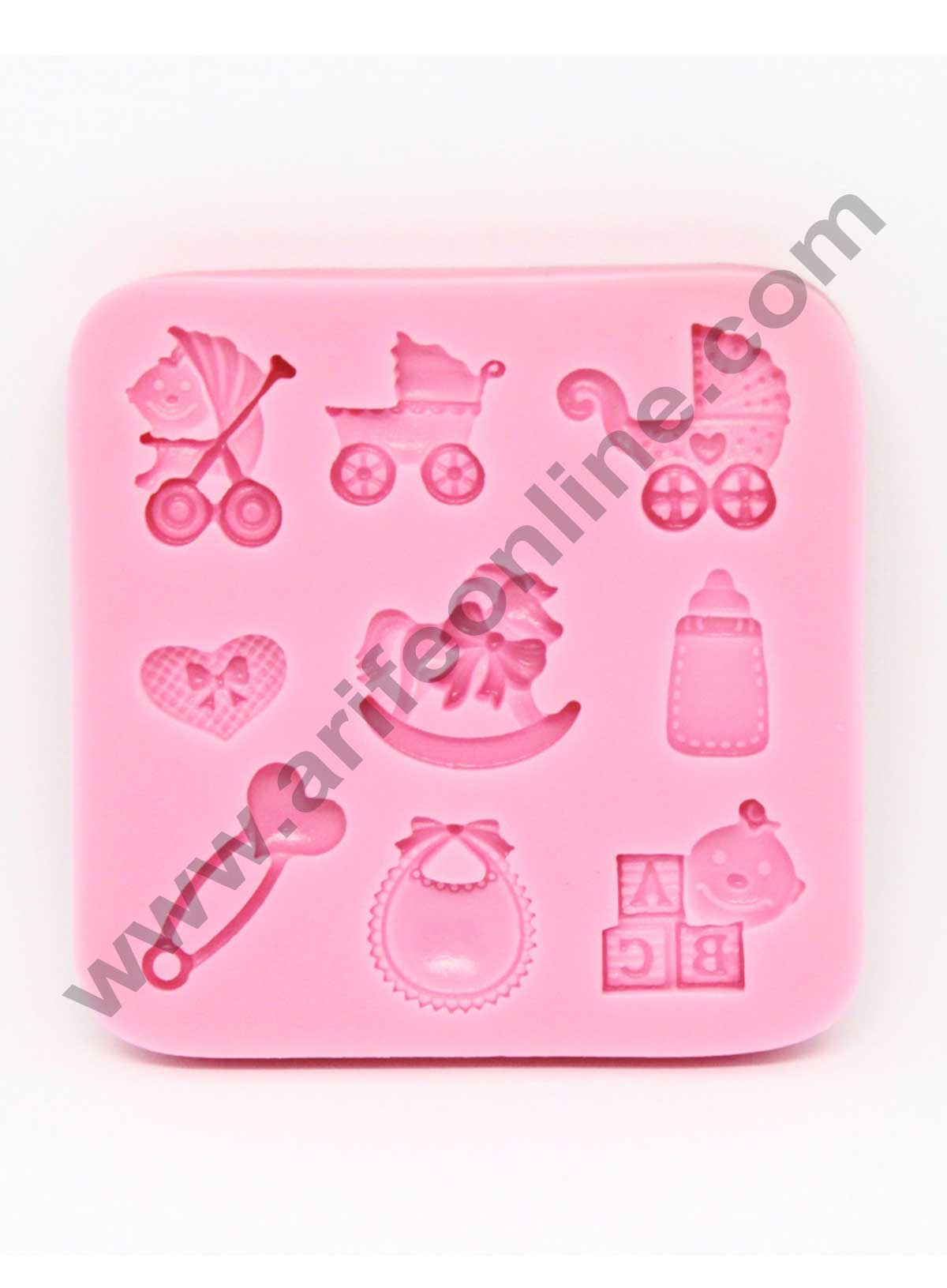 Cake Decor Silicon 9 Cavity Baby Shower Different Baby Strollers Bottle Bibs Heart Pin Cart Silicone Fondant Mould Marzipan Mould