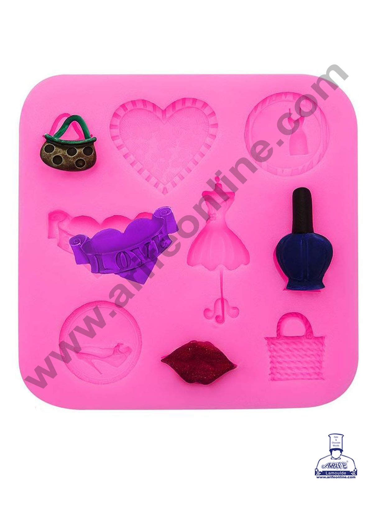 Cake Decor Silicon 9 Cavity Heart Bag Lips Bag And More Shape Fondant Clay Marzipan Cake Decoration Mould SBSP-742 Made of silicone material, tasteless, non-toxic, flexible, dust resistant, reusable, non-stick and easy to clean. Suitable for making cake decoration, bread, mousse, jelly, prepared food, chocolate, etc. Be safe to use in ovens, microwaves, dishwasher, and…