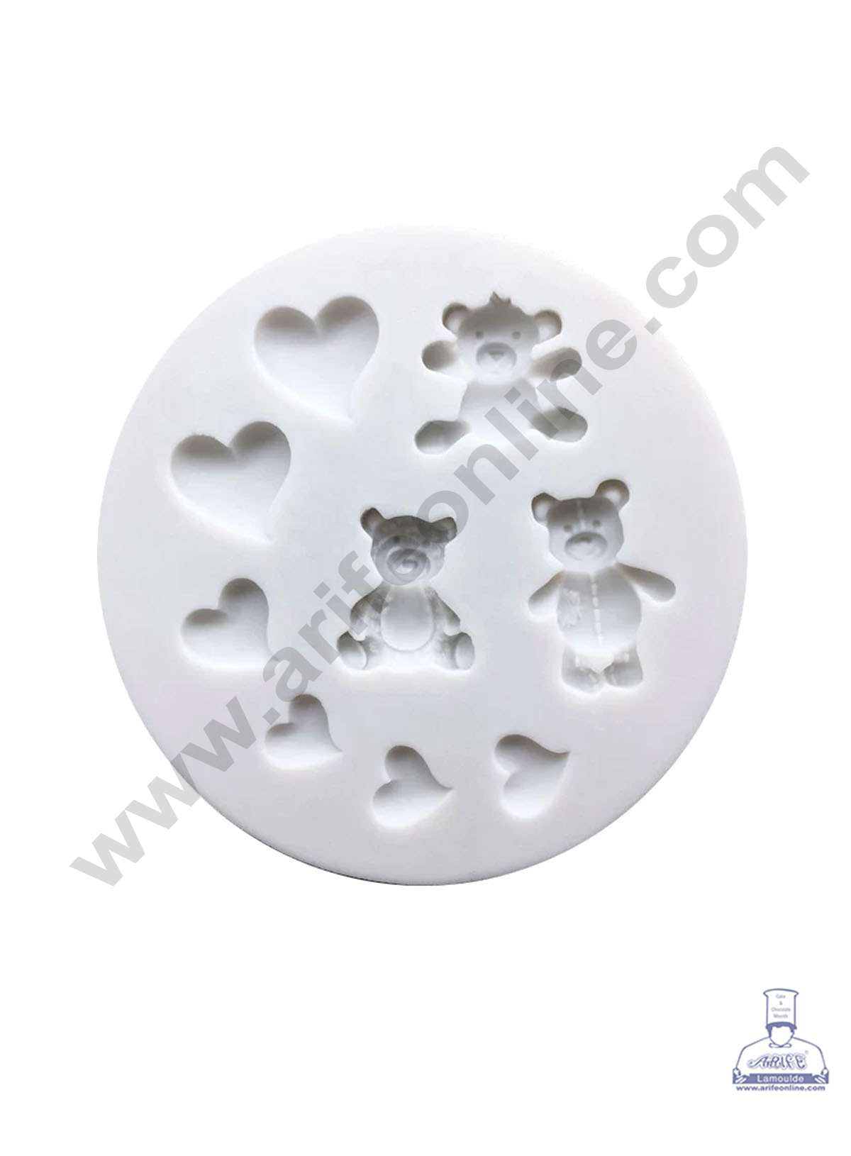 CAKE DECOR™ Silicon 9 Cavity Love Heart and Teddy Shape Silicone Fondant Mold Silicon Marzipan Mould SBSP-DYF6283